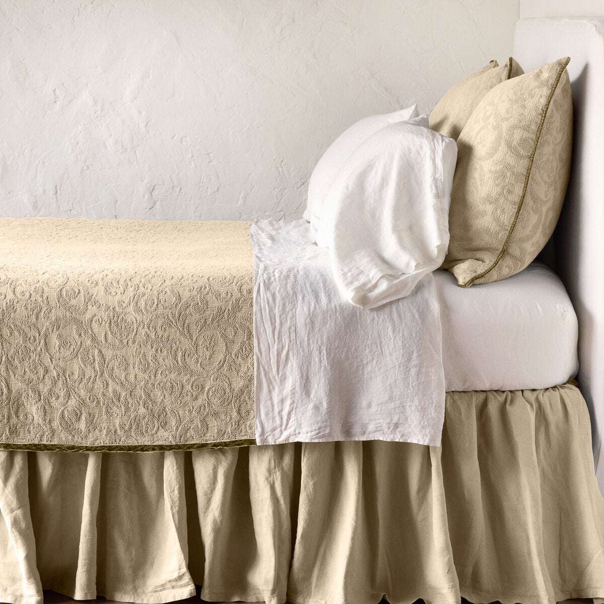 Comprised of 100% organic cotton, this single layer damask weave is incredibly soft and sophisticated. With a subtle pattern and luxurious silk velvet edge, our Adele adds textural interest to the bedroom when garment dyed in any of our hues.