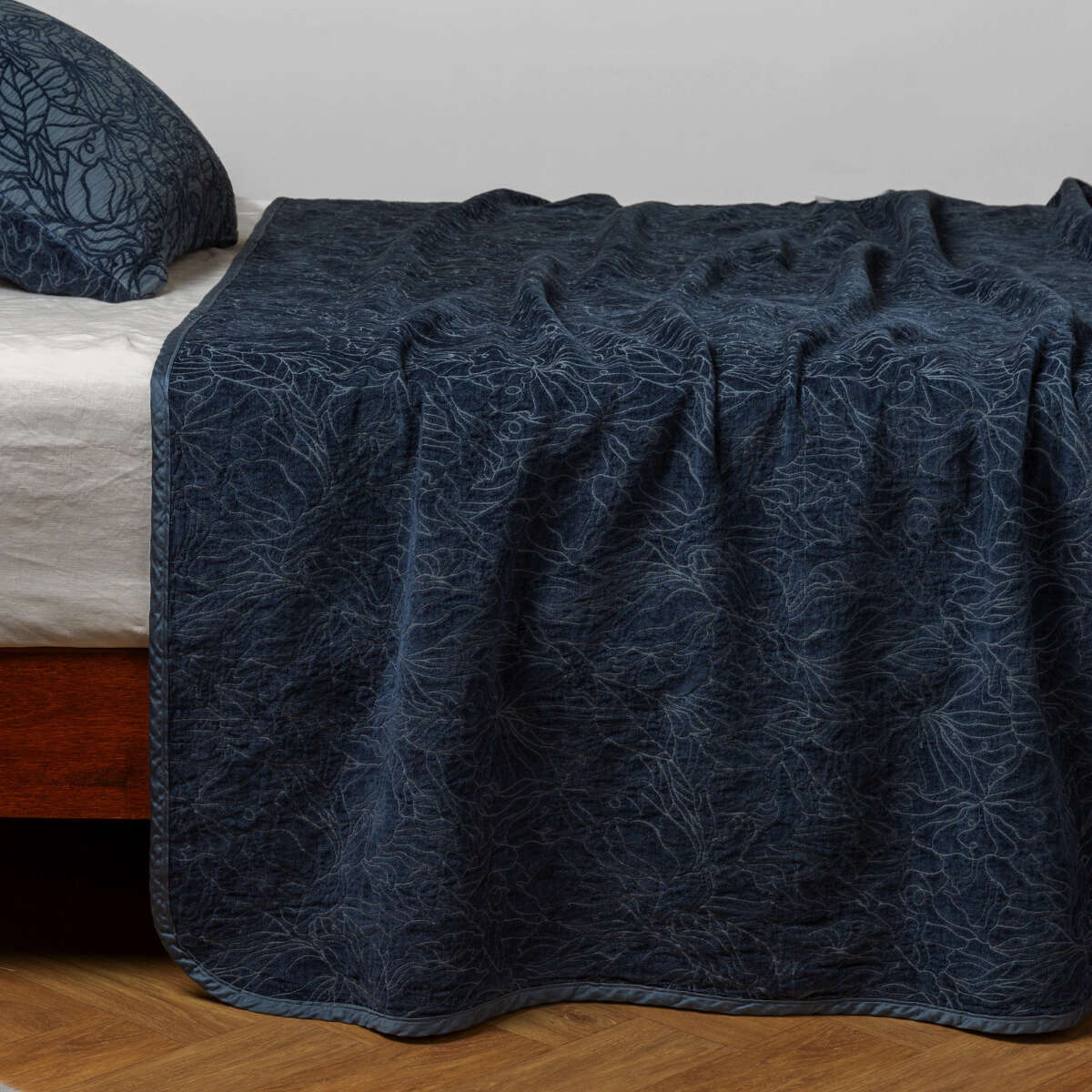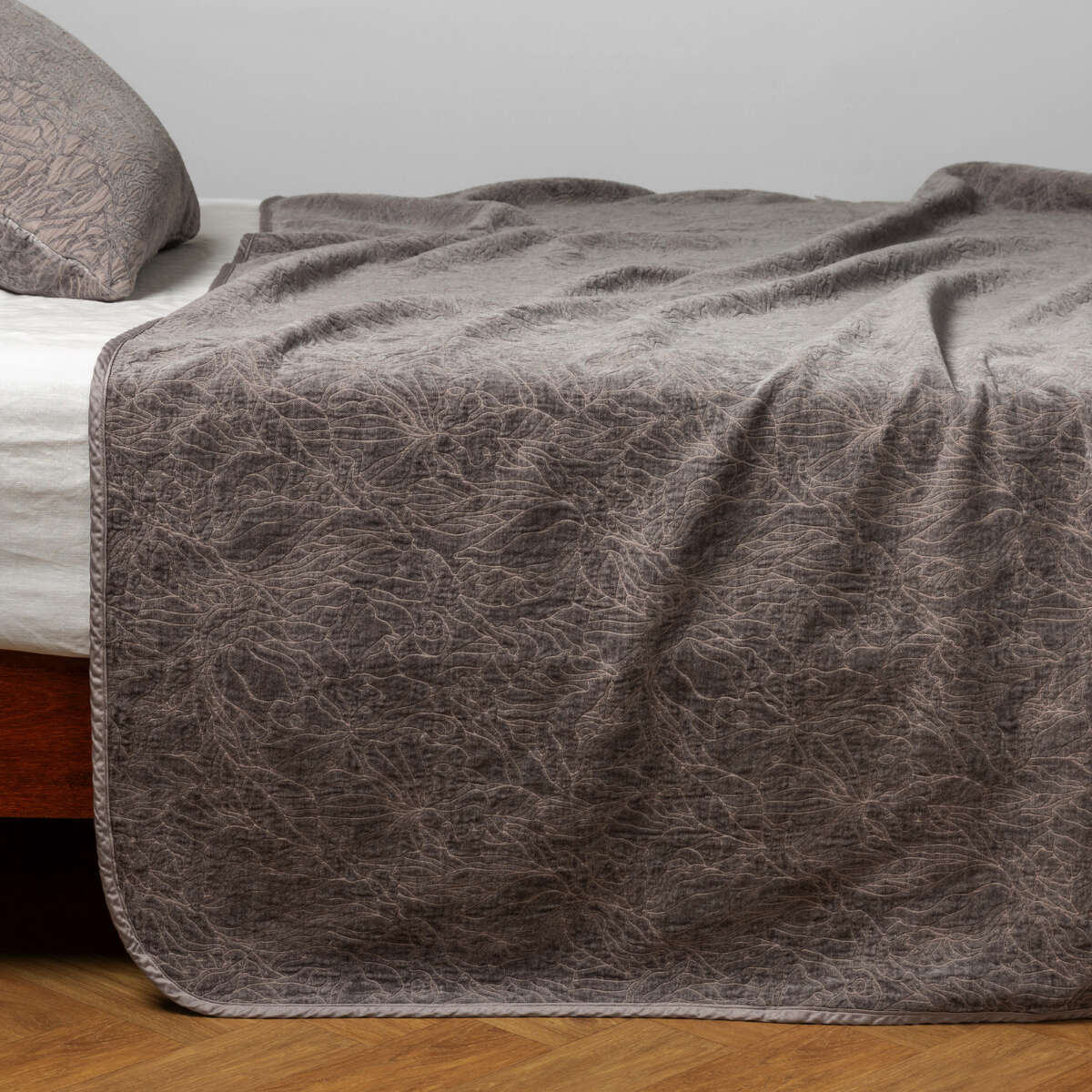 Our Georgia is an exquisite work of art, reminiscent of the collection's namesake. The fluidity of the floral pattern reveals itself in the chenille and cotton jacquard on both sides of the bedspread making it a reversible top-of-bed piece. Generously sized to cover the entirety of the bed, pair this bedspread with its matching shams to create a bedding paragon.
