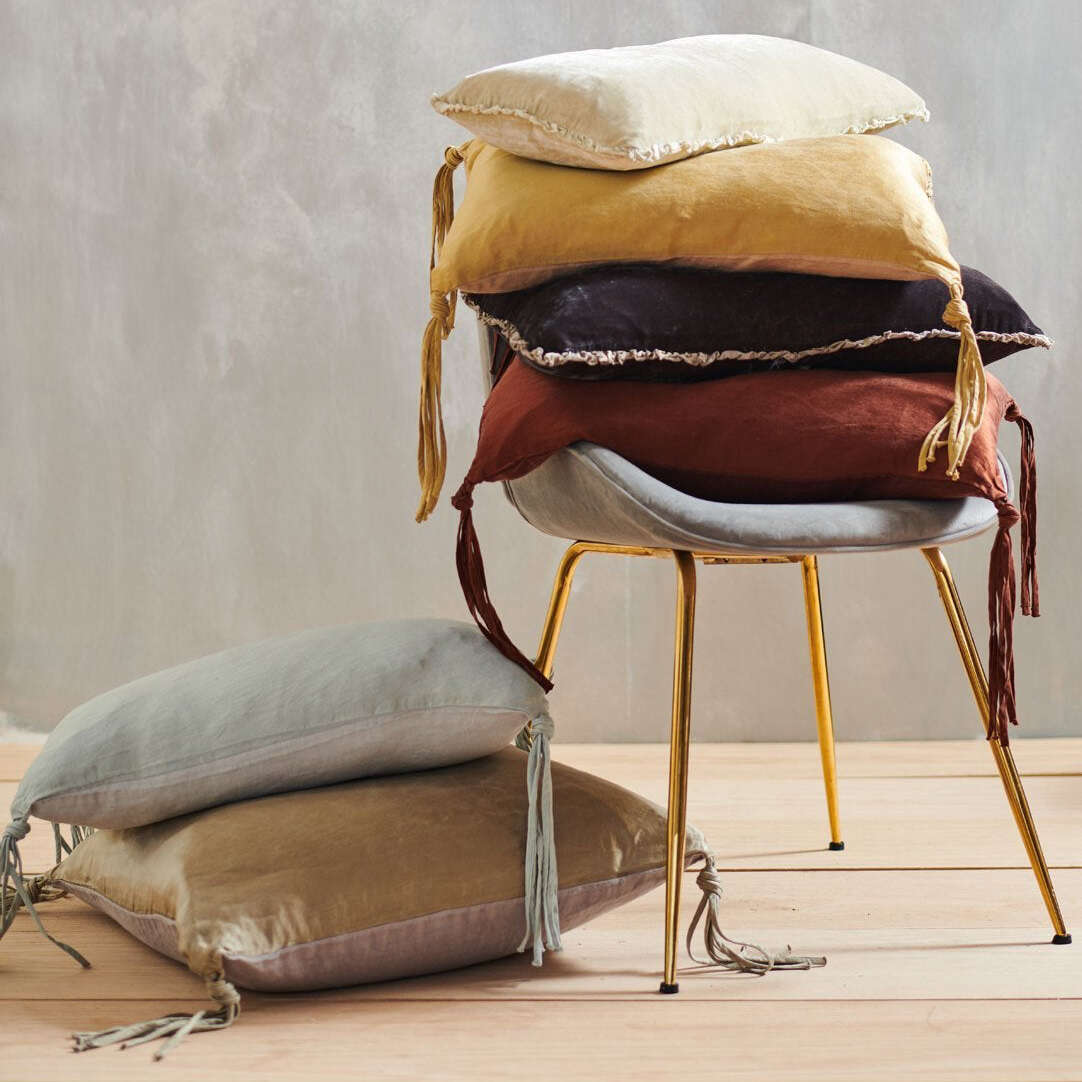 Our Carmen Throw Pillows, plush and regal, boast silk velvet bodies with eye-catching trims adding dimension and color play. These silken throw pillows provide a gorgeous pop of color for your living room, bedroom, or boudoir.