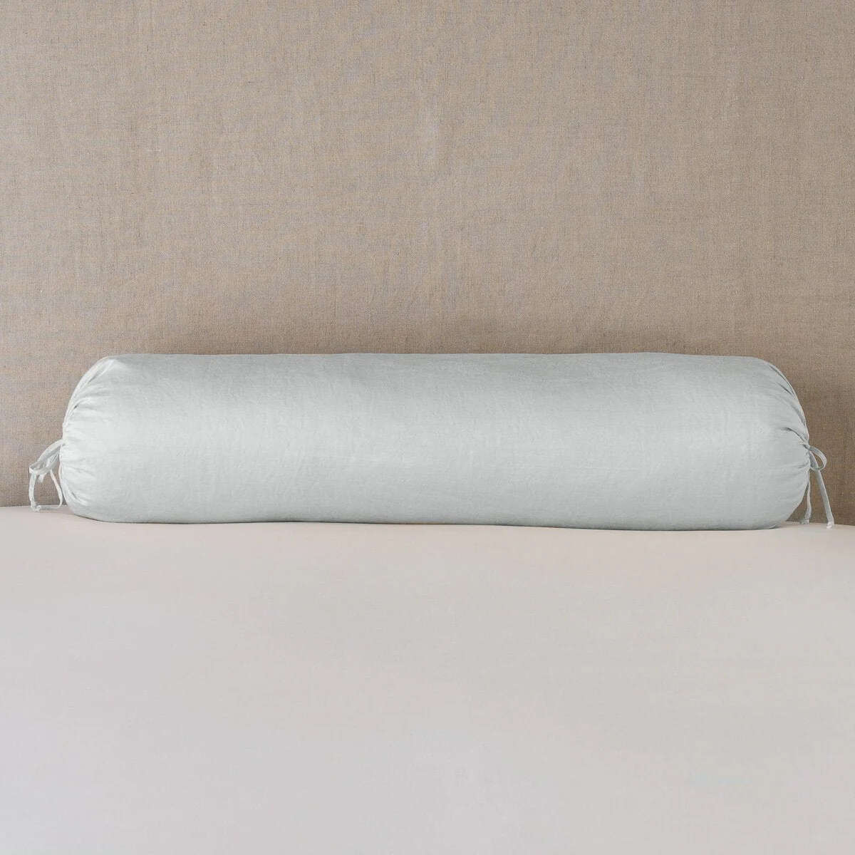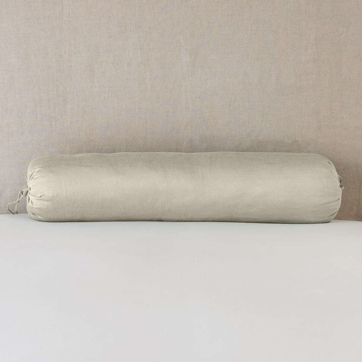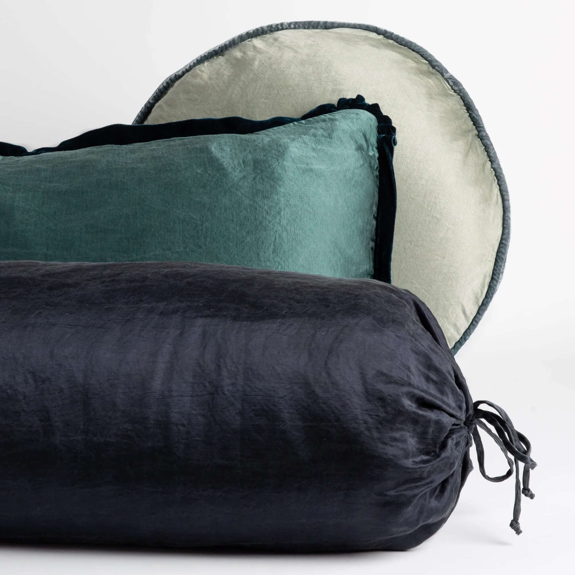 Bolster Throw Pillow 9x39: Body & Ties: 65% Silk, 35% Linen. Charmeuse with spaghetti tie closures, cinched ends.