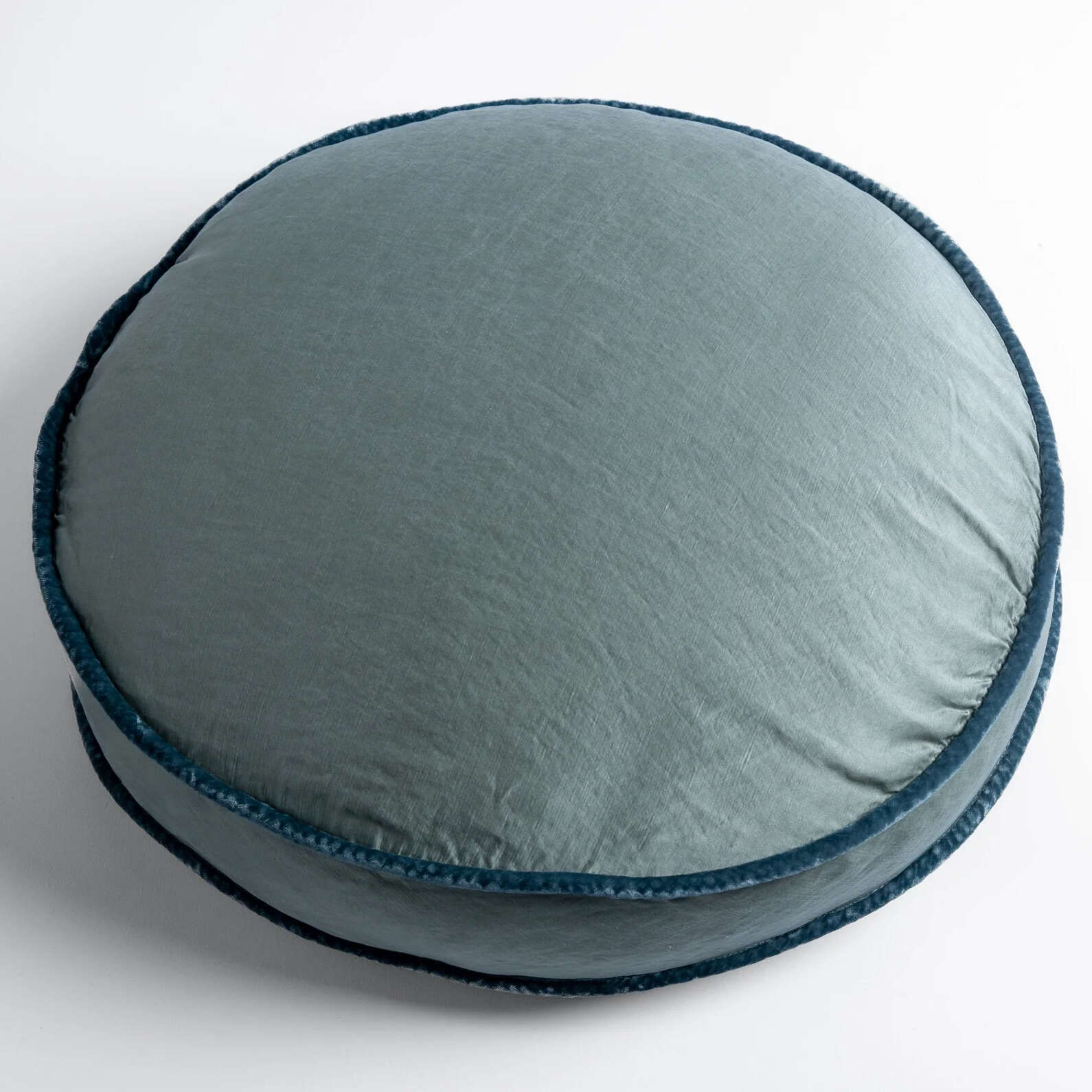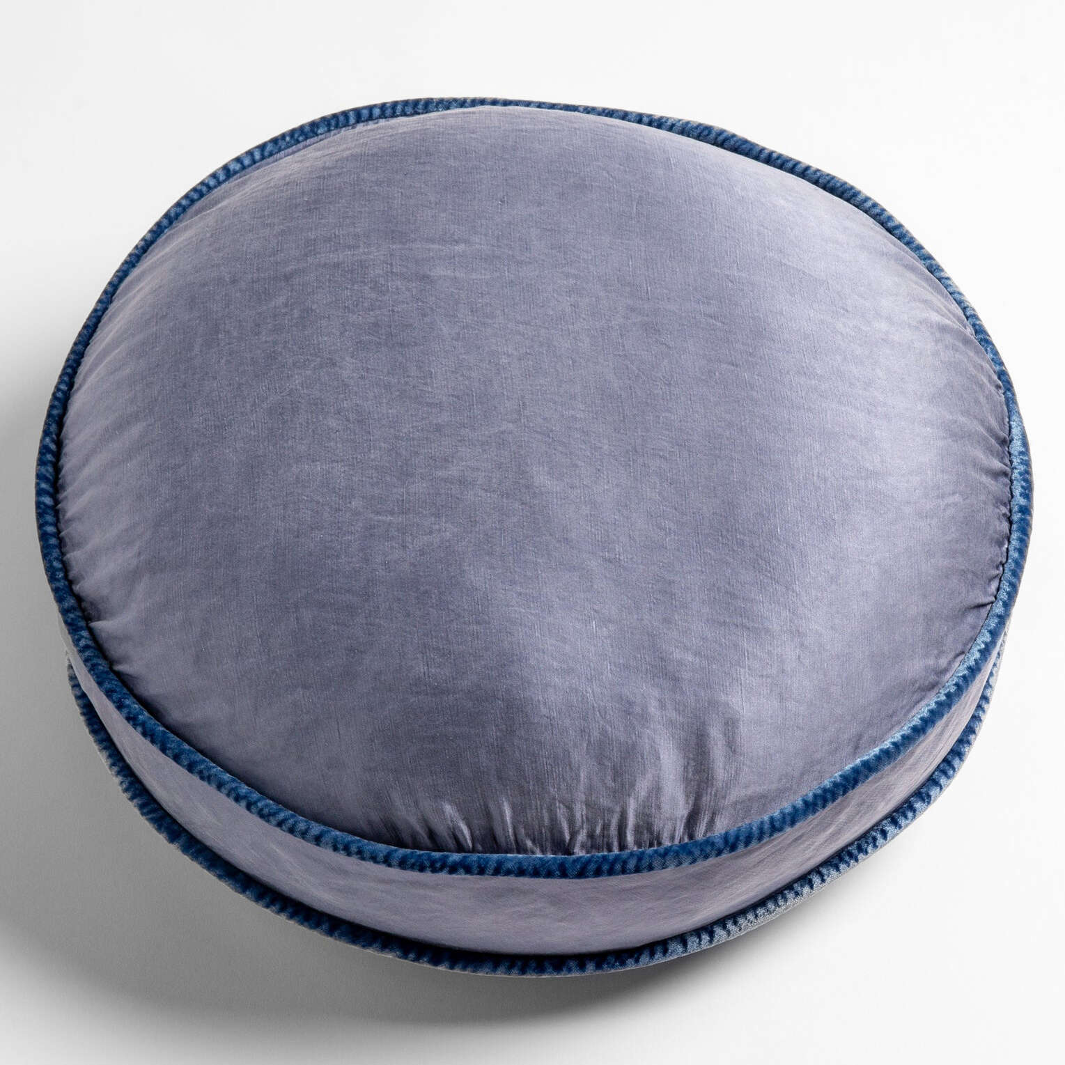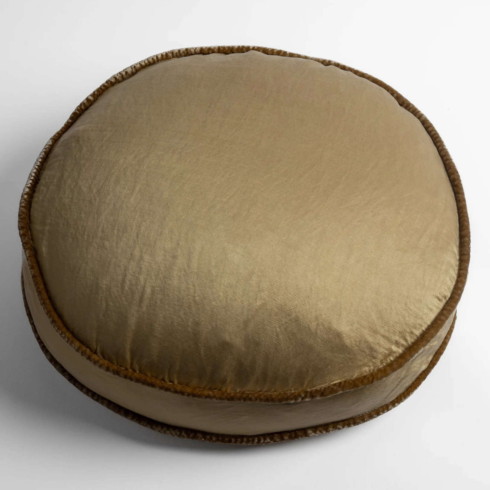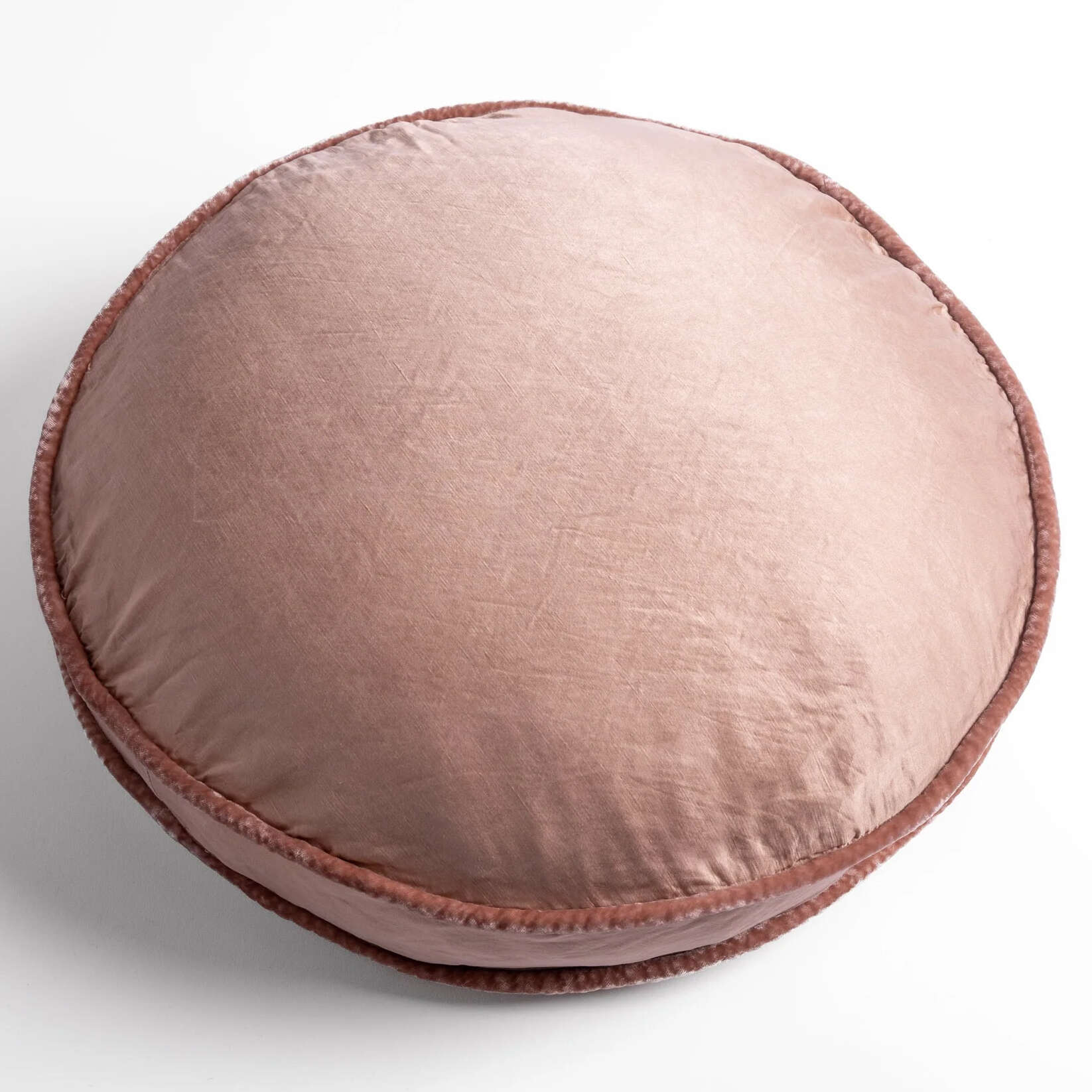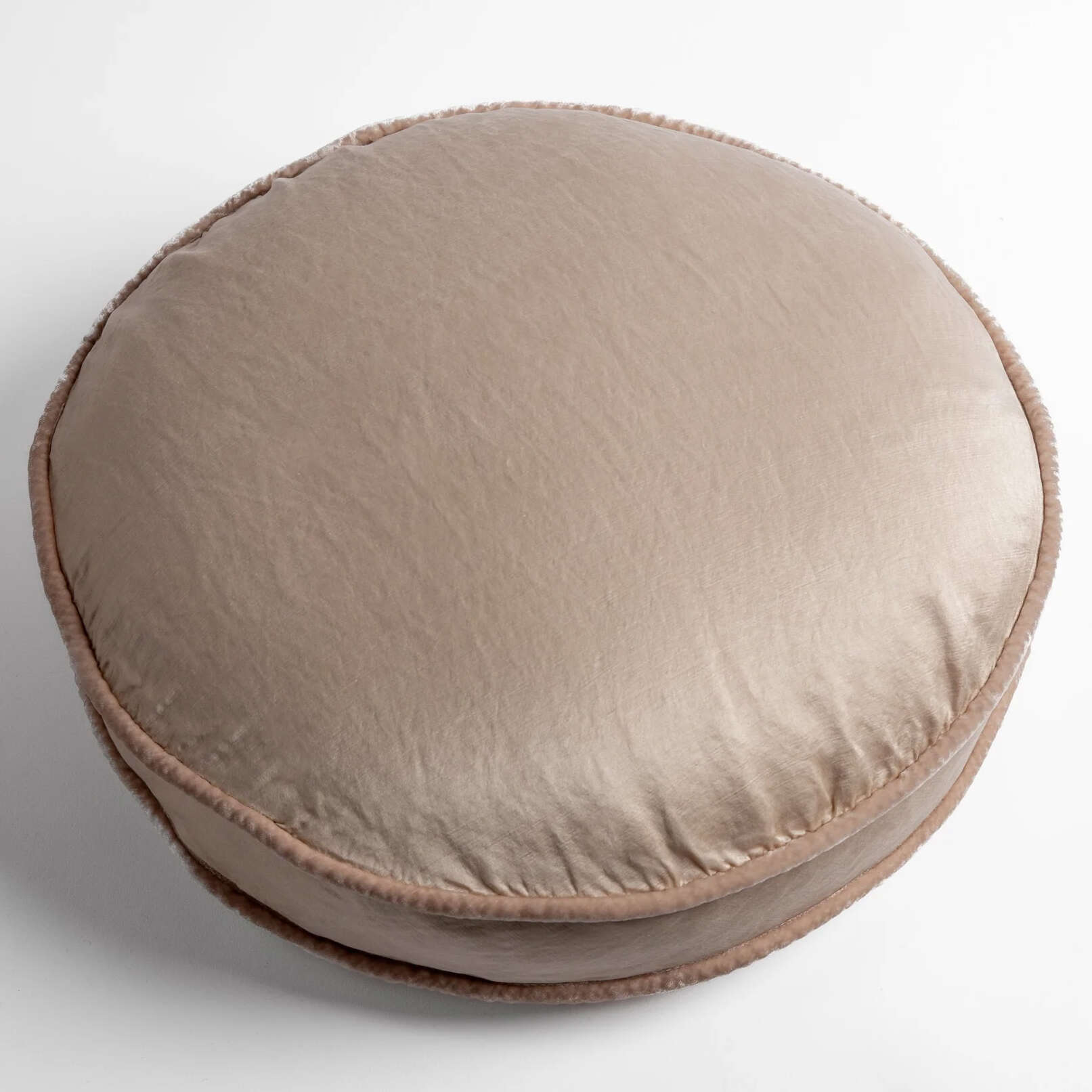Round Throw Pillow 18 Dia.: Body: 65% Silk, 35% Linen; Trim: 82% Rayon, 18% Silk. Charmeuse with silk velvet piping along gusset, zipper closure.