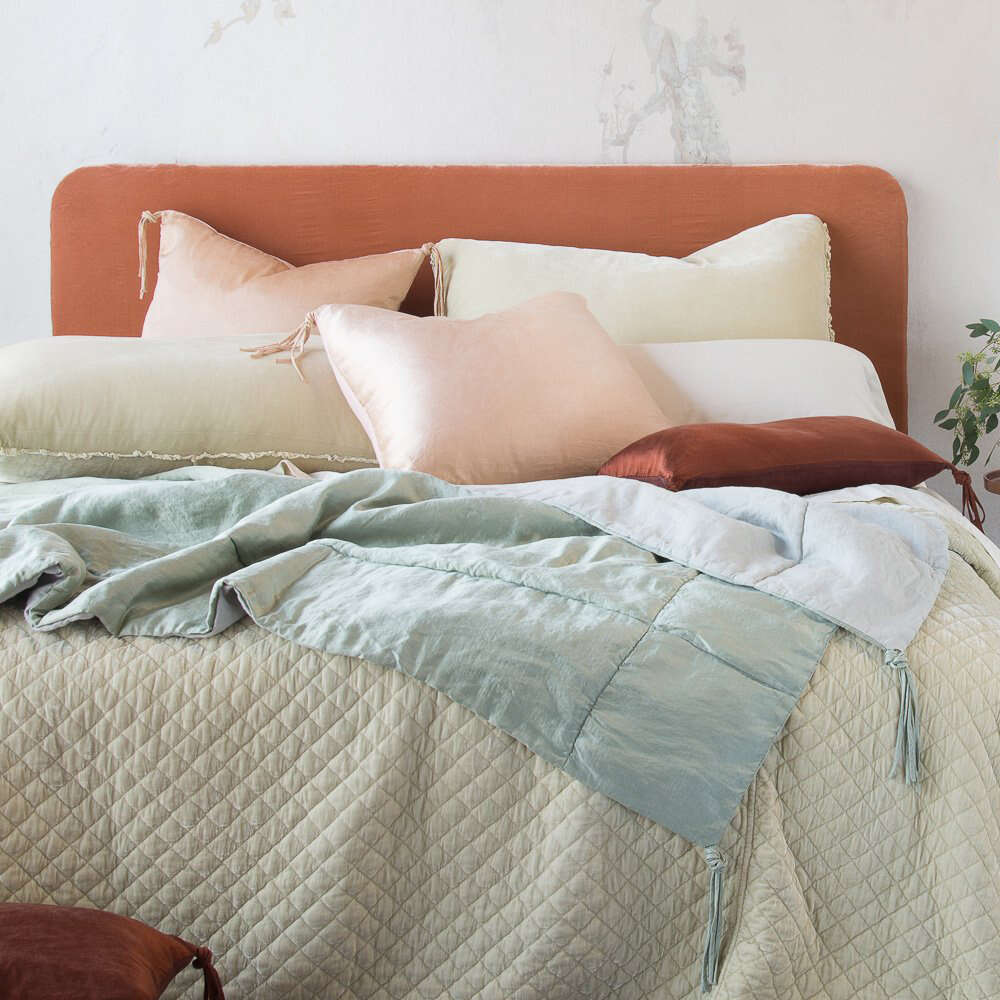 Elegant and eclectic, the Taline Throw Pillows pay homage to the Moroccan design. Featuring our favorite charmeuse and backed in midweight linen, the three sizes are adorned with charmeuse tassels on all four corners of each pillow. Glowing with a unique brilliance in all of our hand-mixed hues, these pillows come with removable inserts for easy laundering of the reversible pillow covers.