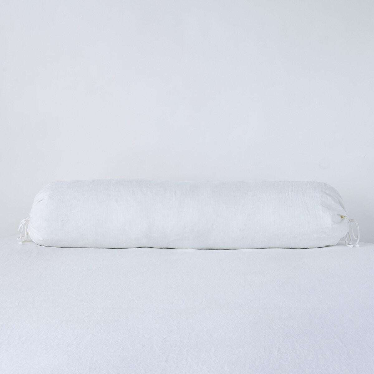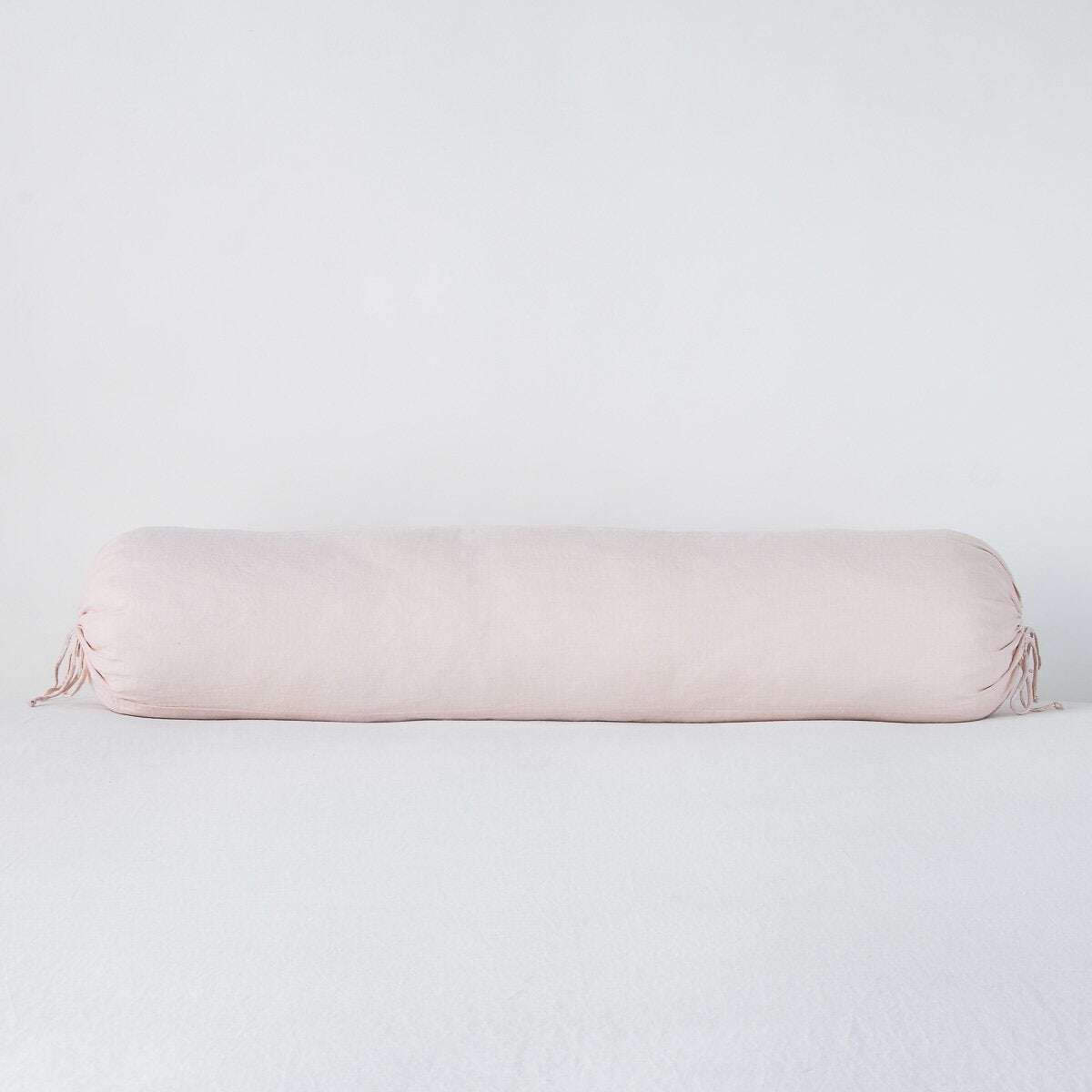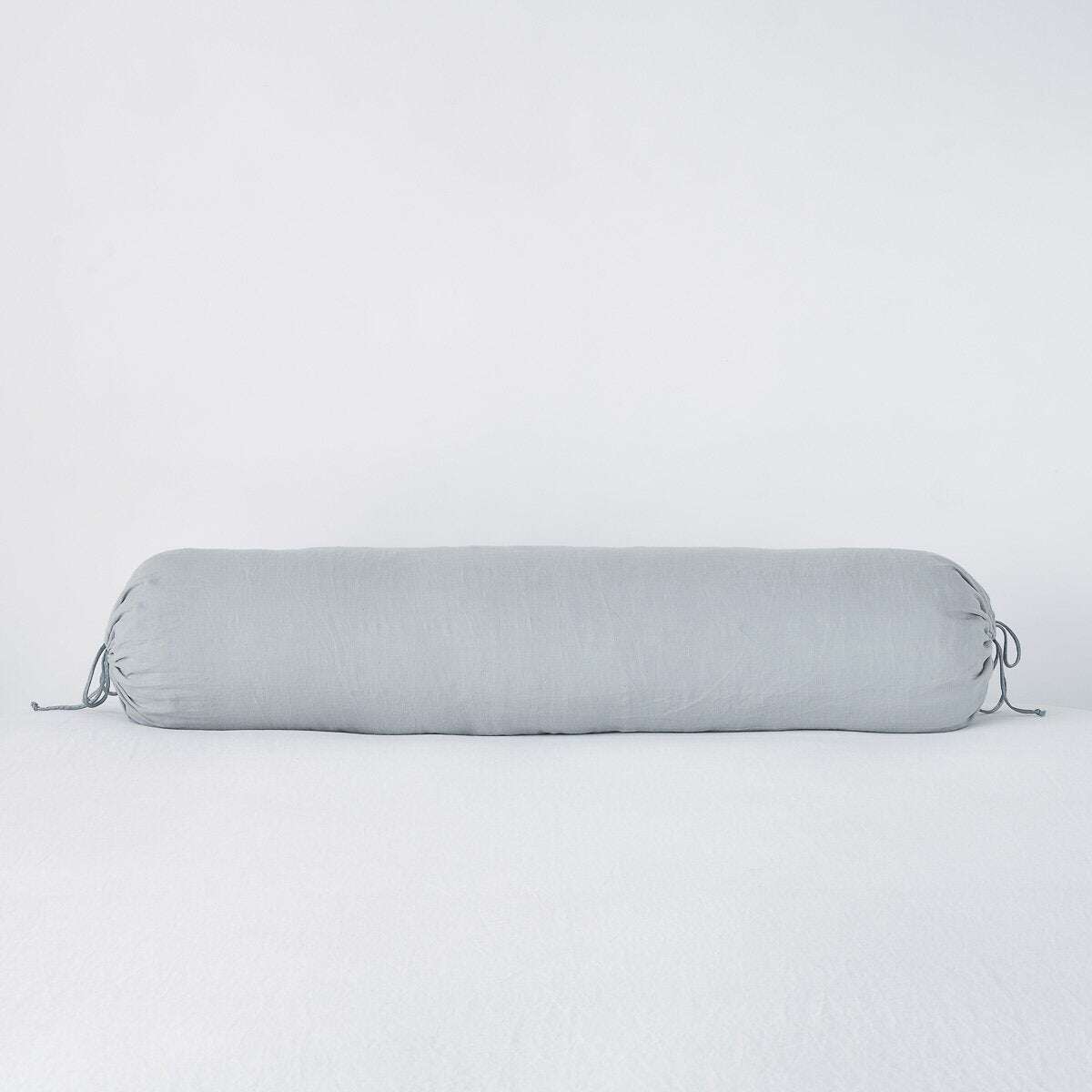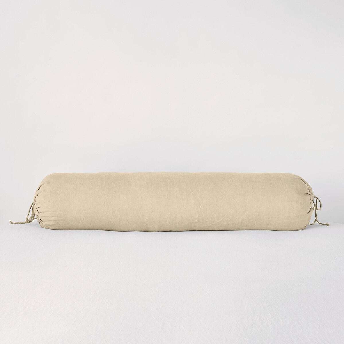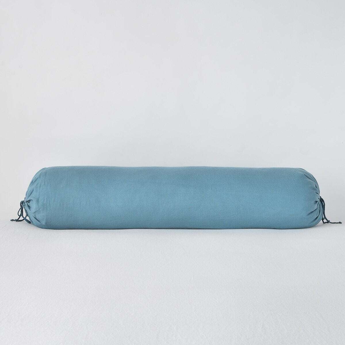 Our garment dyed Linen Bolster is elegant in all of our hues and closed with delicate Satin spaghetti ties for a touch of color play. Great on your bed or along a chaise, this bolster adds a new shape to your assortment of pillows and cushions!