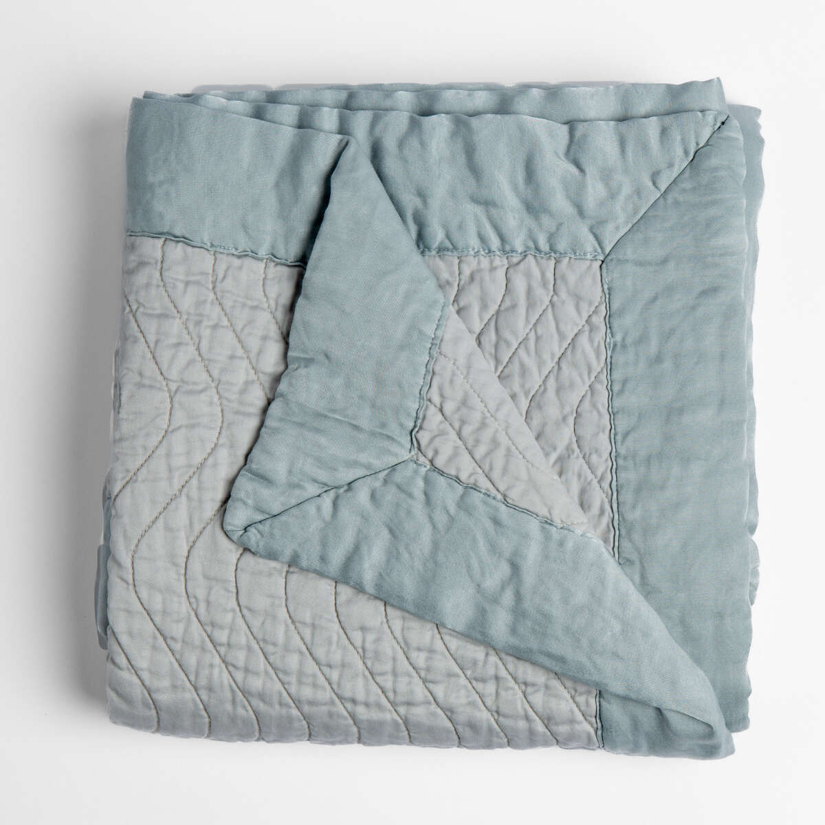 An ample satin binding frames quilted 600-thread count cotton sateen on our Cirillo Blanket, a personal-sized quilt. Perfect for the back of a sofa or at the foot of a bed, the gentle wave pattern lulls you into a state of serenity. Small batch dyed in our entire palette and machine washable, this blanket is your next treasured layer.