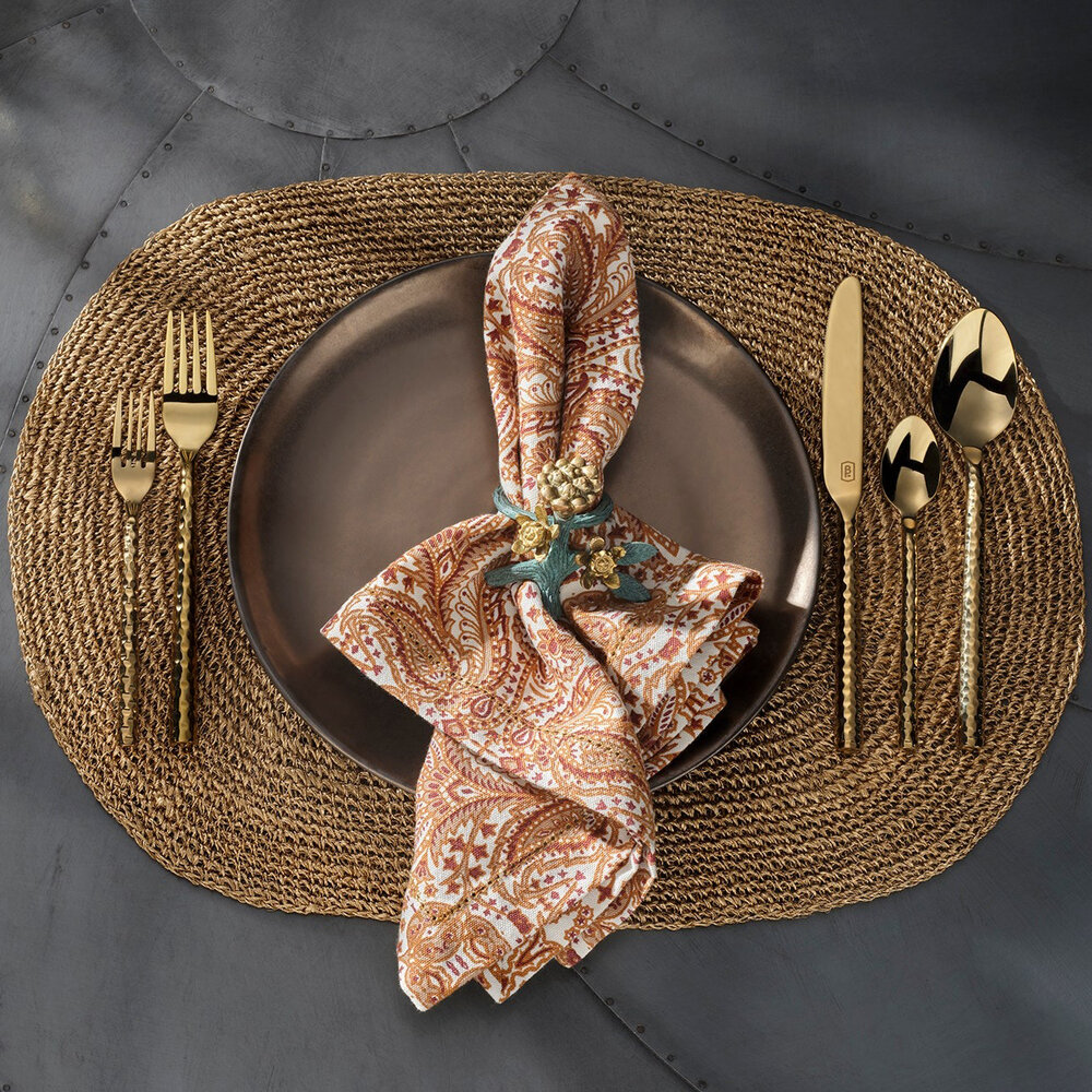 The dreamy flower details of the Bernadette napkin rings add a hint of whimsy to the table, complete with an elevated antiqued finish.