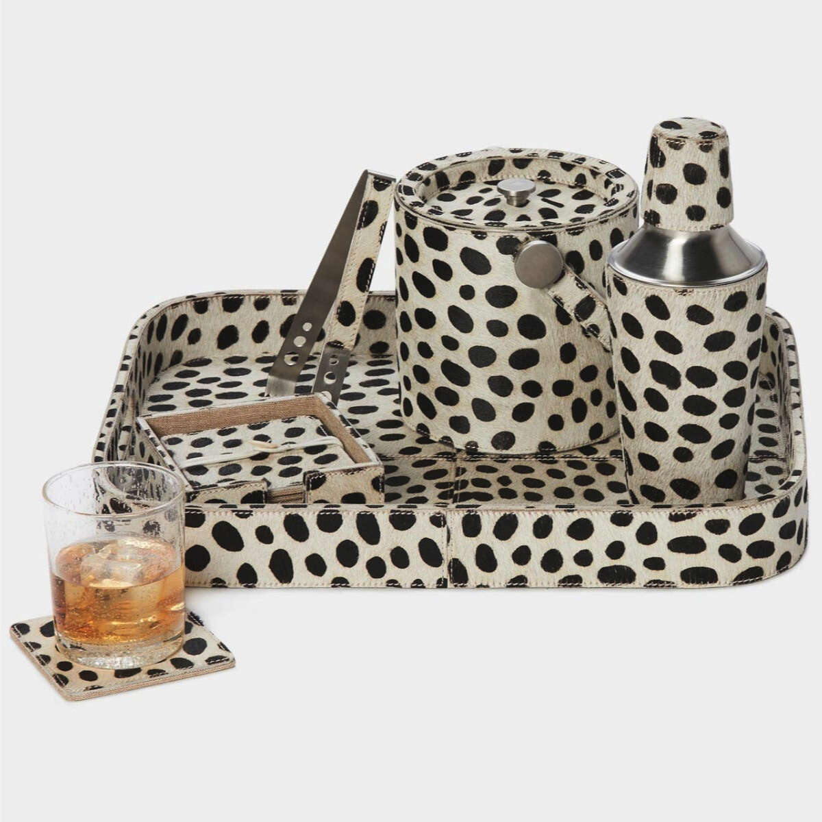 Crush-worthy bar collection featuring Dalmatian spots on luxe hair-on-hide.