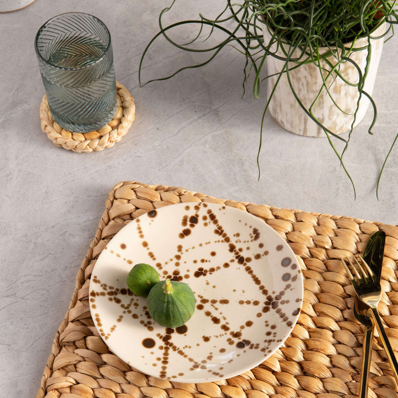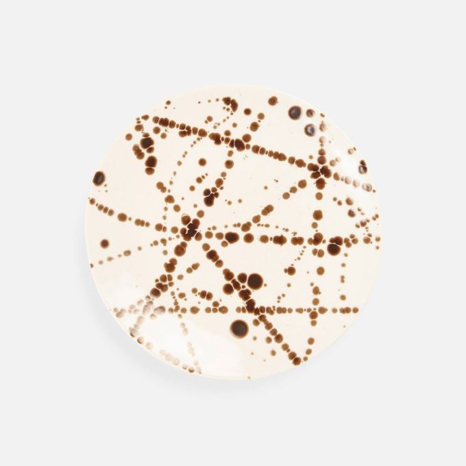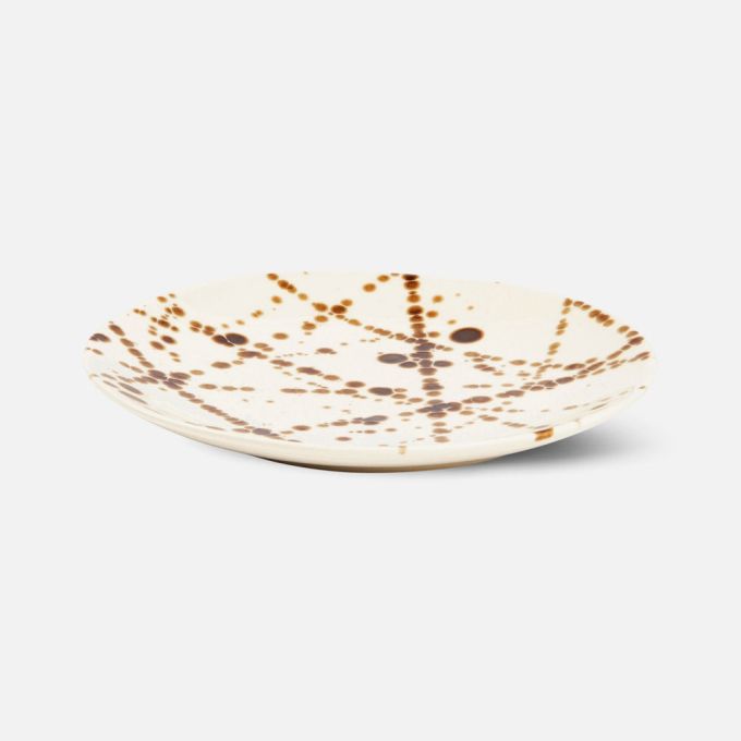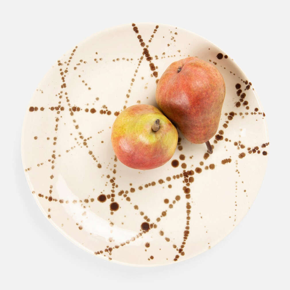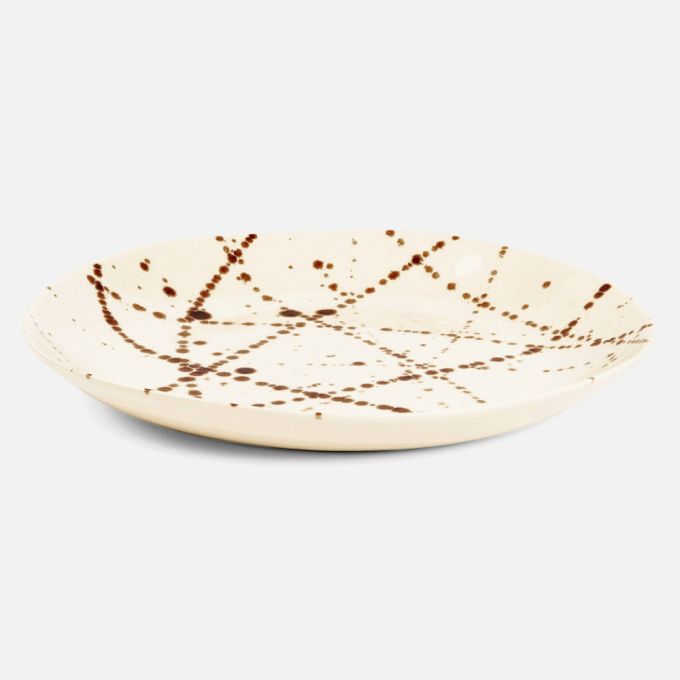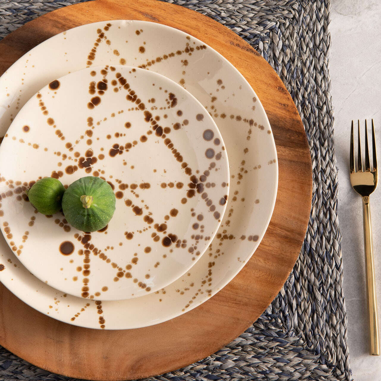 Crafted stoneware collection with Bronze Splatter finish and undulating rims.
