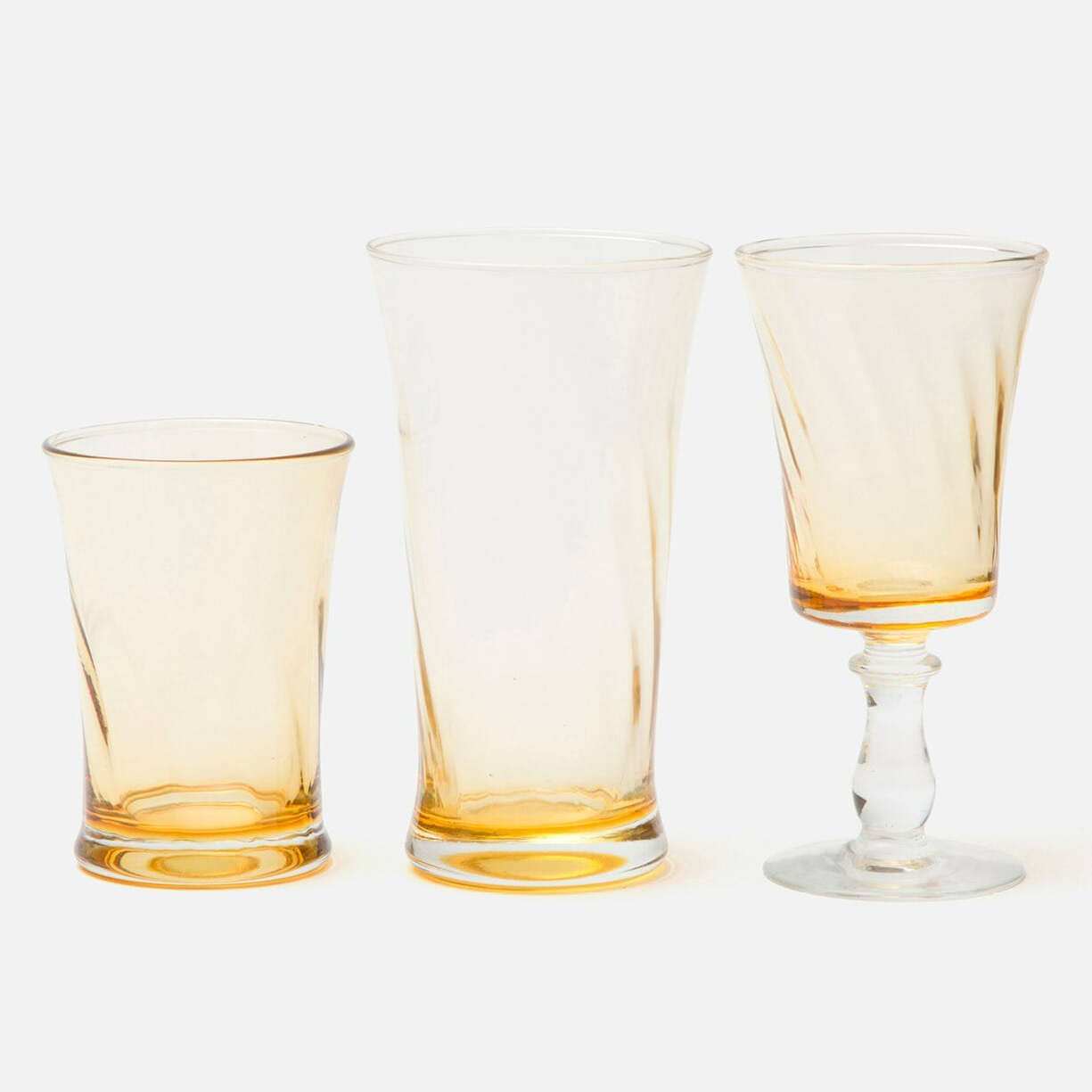 The spiral pattern of this tapered collection gives the Colette’s hand blown glass an optical depth. Serve up a pre-dinner aperitif or a post-feast old-fashioned; the heavier lipped bottom ensures a hand feel as carefully considered as the drink it was made to hold.