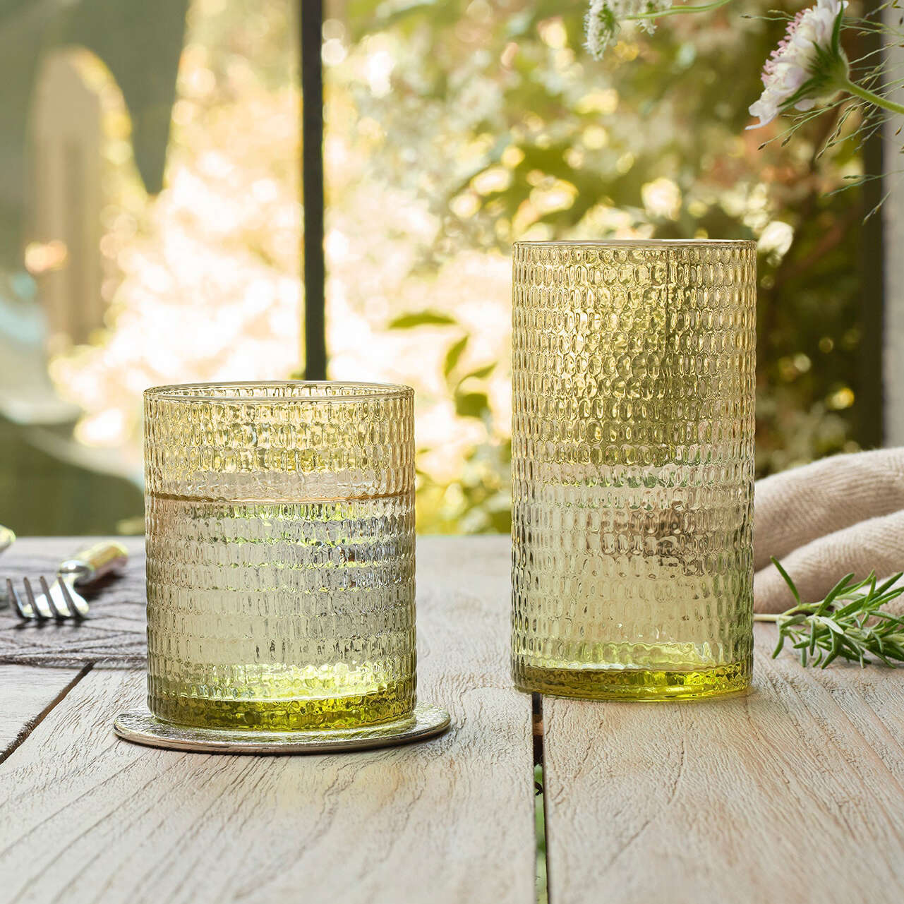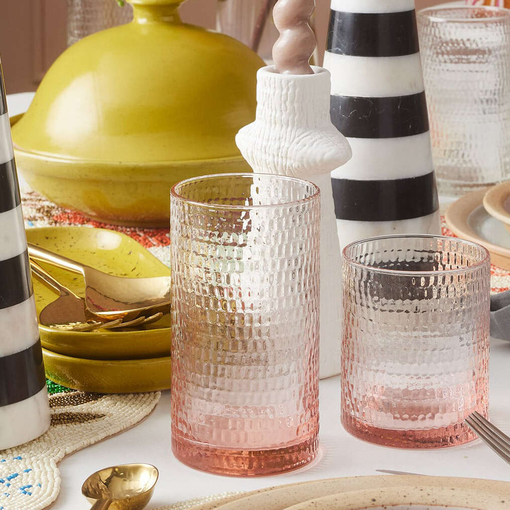 Add an air of masculinity with the simple, straightforward Duncan. Whether you’re serving water with ice or Scotch on the rocks, these crocodile-textured glasses bring a classic bar feel to your fête.
