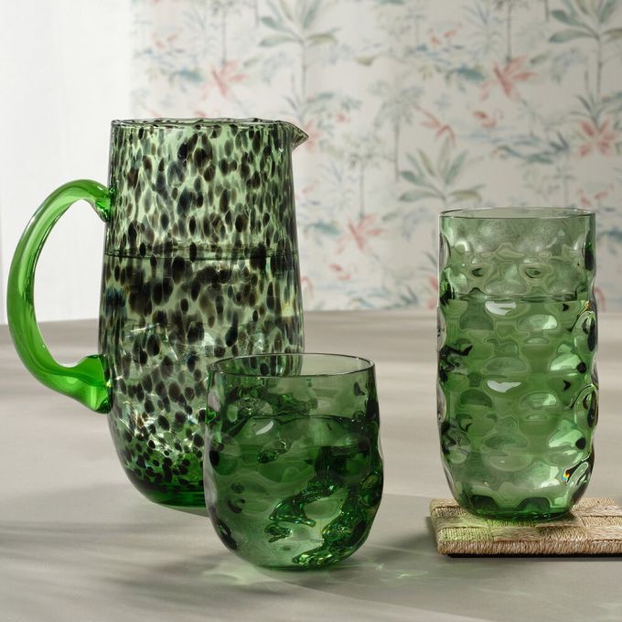 Enjoy cool cocktails on the porch from our Andrew pitcher. Made from hand-blown glass and available in three intriguing finishes.