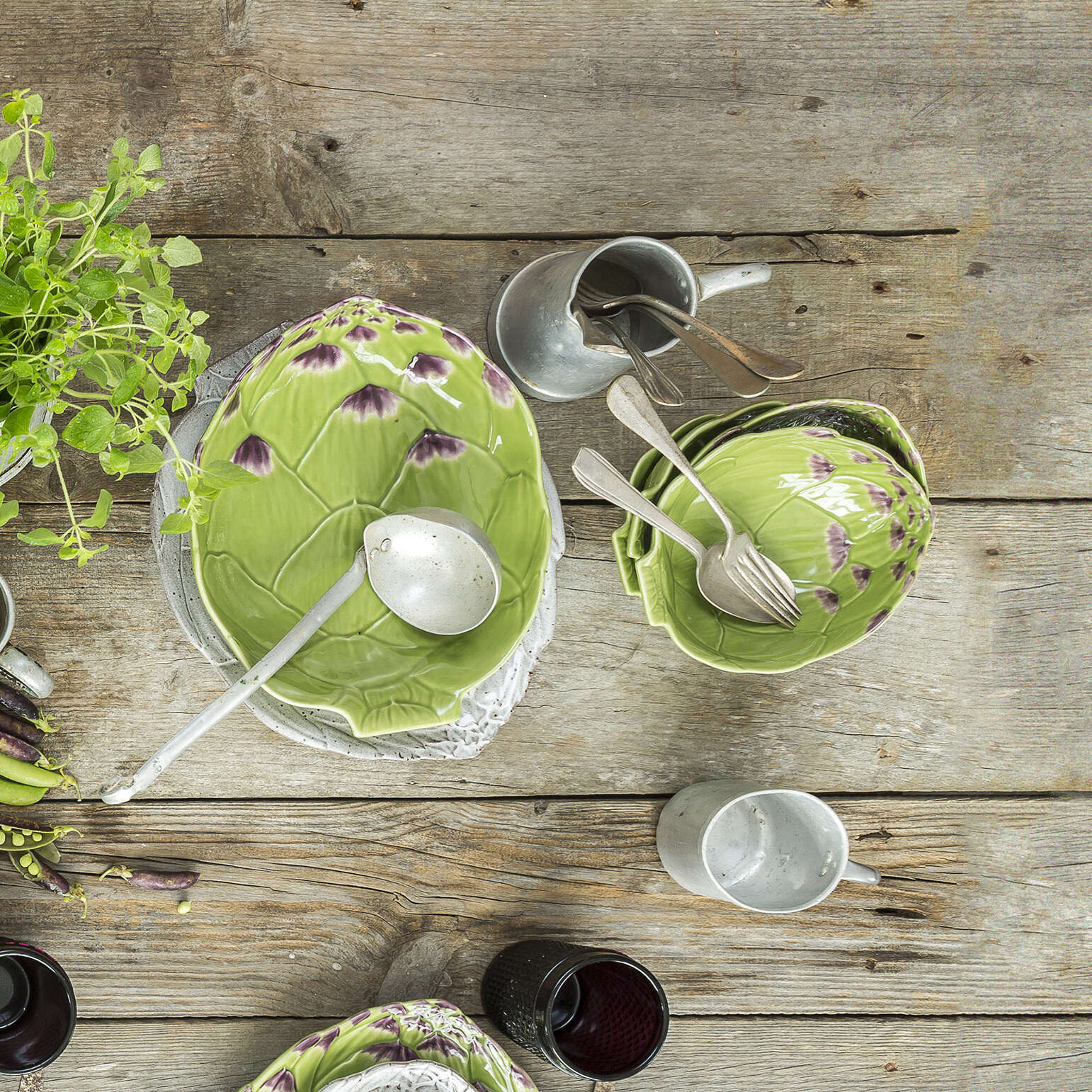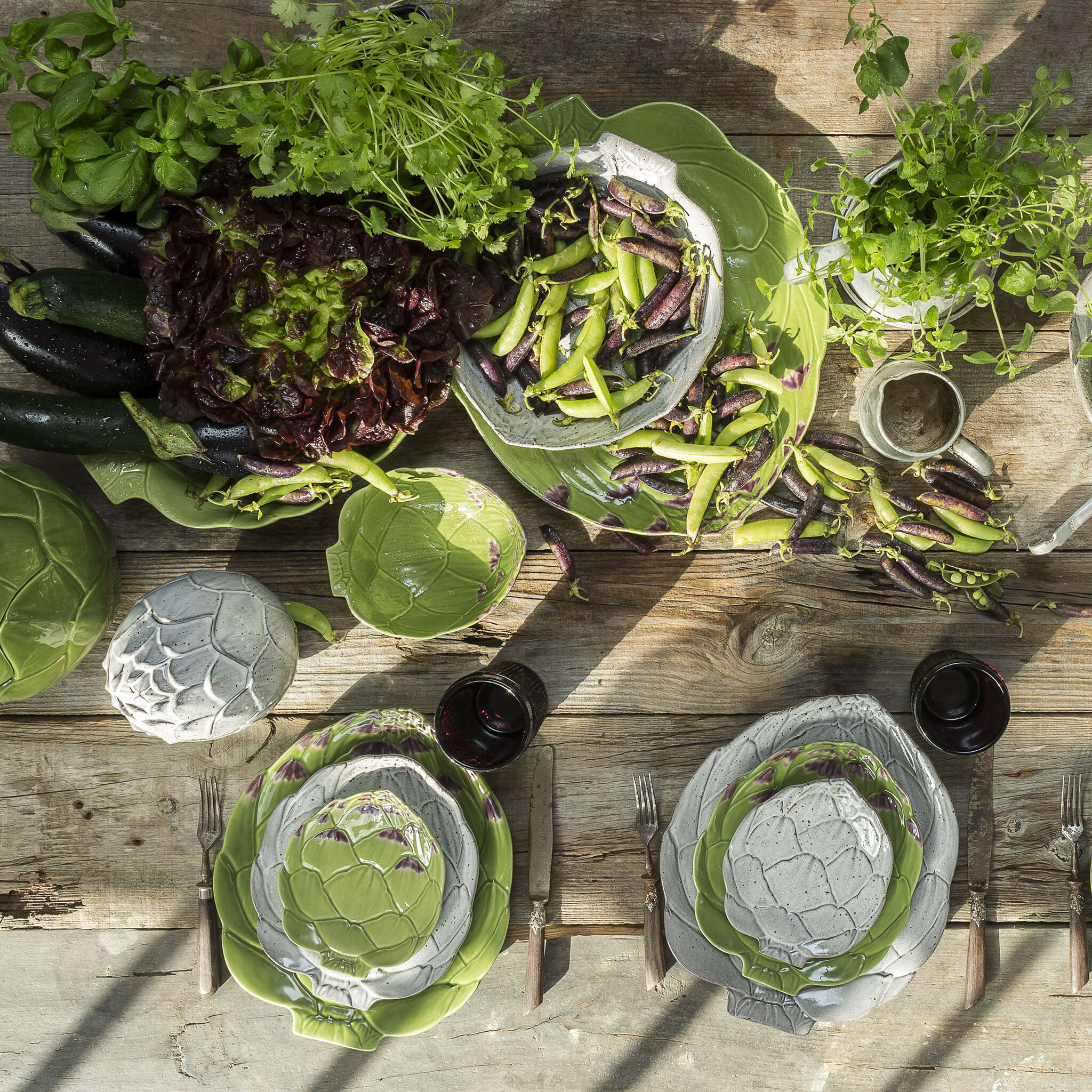 Continuing the development of the current range of vegetables, while maintaining the brand's historical identity, Artichoke presents entirely new utilitarian and decorative models. The DNA of Bordallo Pinheiro is present in meticulous attention to detail, both in the shaping of forms and texture, and in manual painting of the most faithfully naturalistic style. It coexists with the rustic white, in a versatile and contemporary set, allowing a very original mix and match.