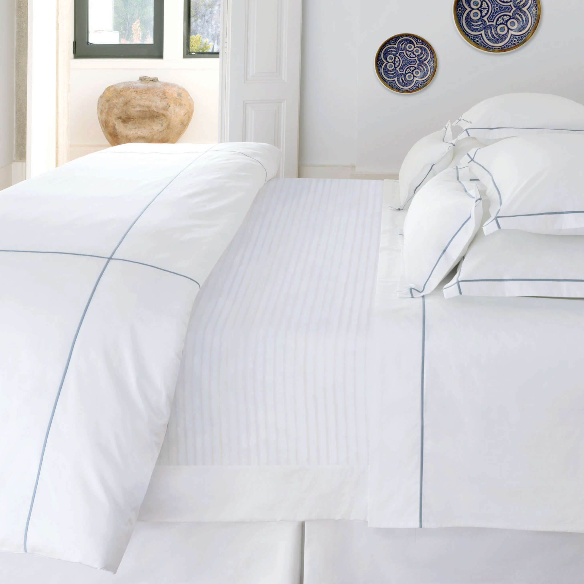 Our Classic Hotel Collection is perfect for any bedroom. The single line embroidered sticth on our 200 TC Cotton percale with a cross stitch at the corners to give a sophisticated yet timeless look.