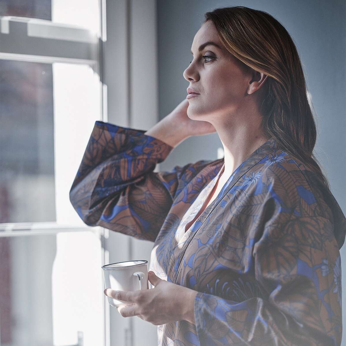 Golden Garden captivates with its classic colour combination of deep blue and gold. The gold tone of the leaves and blossoms has a metallic effect thanks to the nobly shiny texture of the extra-long staple cotton satin.