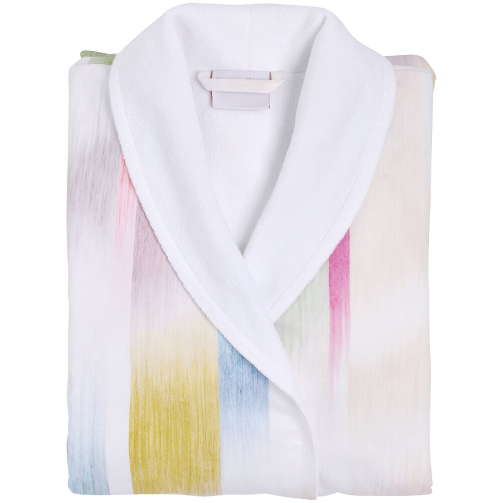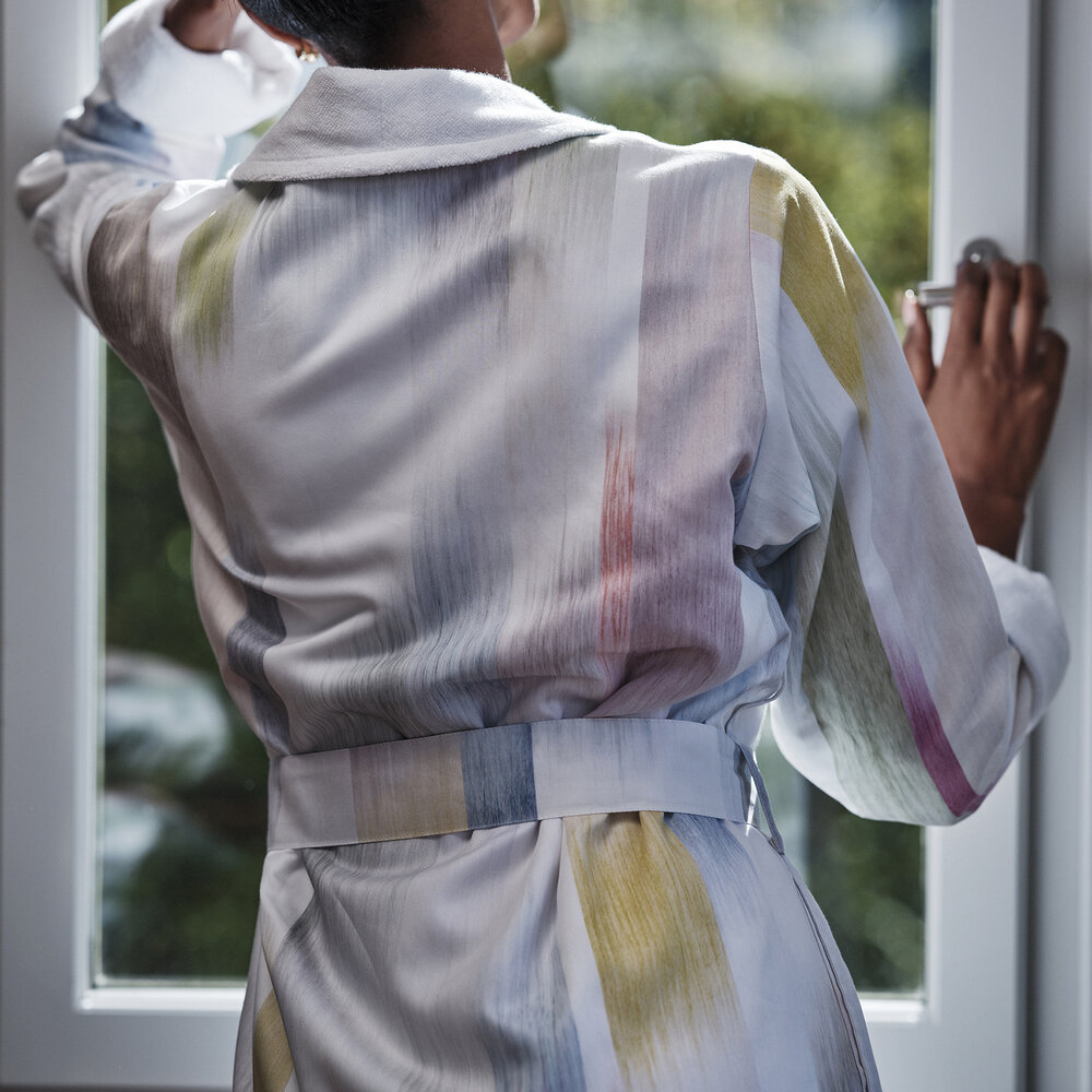 The dressing gown SATIN MOTION combines the best of two worlds, the pleasant soft feeling of Christian Fischbacher terry bathrobes, as well as the exclusive design of the unique satin bedding MOTION.