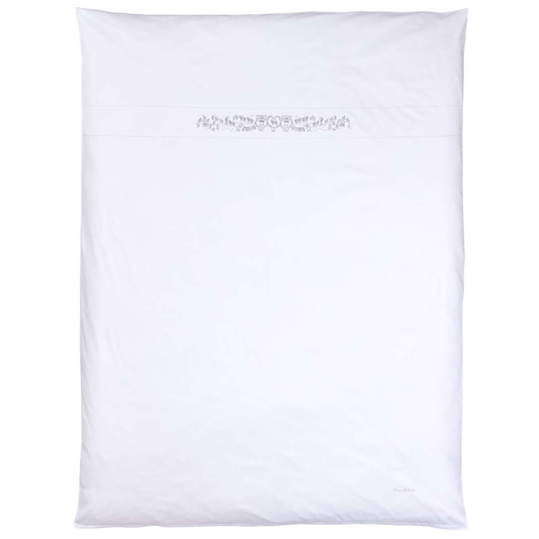 The design ALPAUFZUG is a nostalgic reinterpretation of the chalet style, perfect for your house in Aspen, Gstaad or St. Moritz. The design is executed vertically on the pillows and horizontally on the duvets, which adds additional refinement to this charming embroidery.