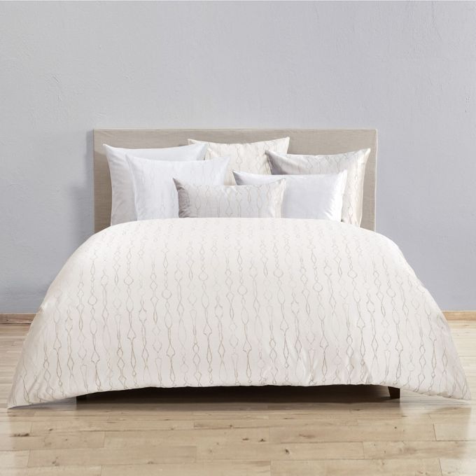The colourful woven jacquard design Artemis is an elaborate celebration of the moment of resolution. The design portrays teardrop-shaped ornaments as if strung together on a chain, which are subtly broken off towards the edges. With its understated elegance, this bed linen adds a sophisticated touch to every bedroom. Artemis is woven by an Italian family-run mill in Lombardy which, with expert craftsmanship cultivated over centuries, has been the textile heart of Italy since the Middle Ages. The high proportion of satinette on the surface of the fabric lends it a particularly smooth and elegant feel.