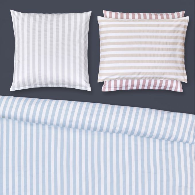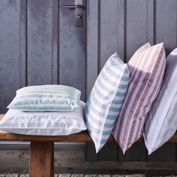 Stripes are a timeless classic when it comes to motifs. Printed on our finest cotton satin, pastel accents interplay with the white background. Whether used as a statement piece or combined with other designs, Calma adds a touch of serenity to your bedroom thanks to its understated appeal.