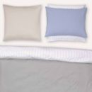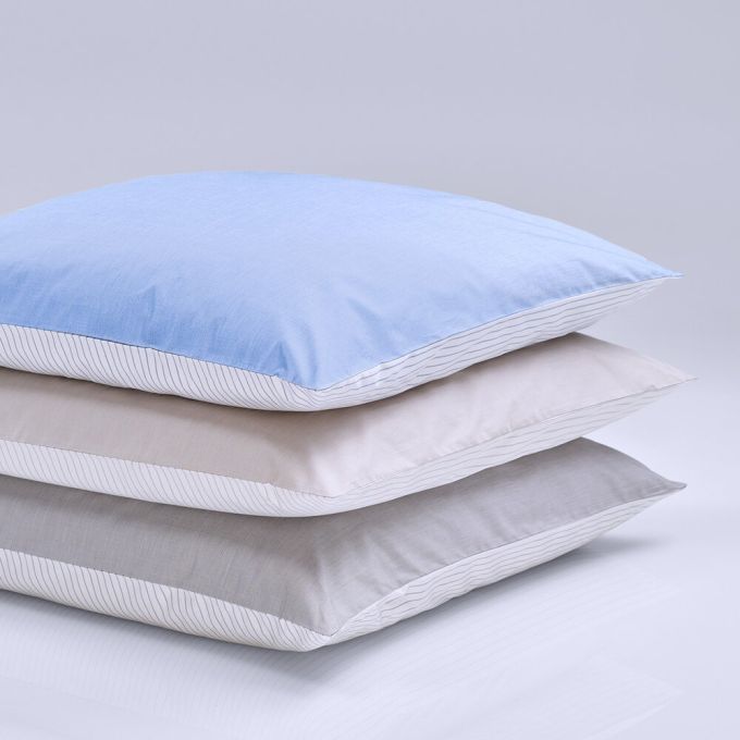 With FIL À FIL, the name says it all: a white and a coloured yarn are woven in turn, thread by thread. We exclusively use extra-long staple cotton of the highest quality for this, making the fabric finer, more durable and therefore longer-lasting. The plain weave makes FIL À FIL extremely light, at just 108g/m2, and also lends the fabric its unique look and pleasant feel.