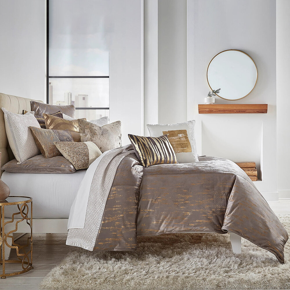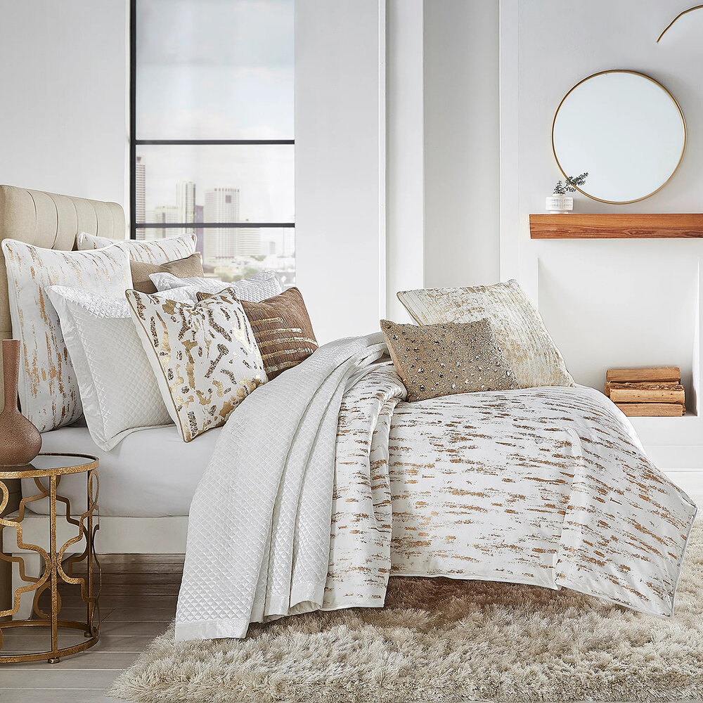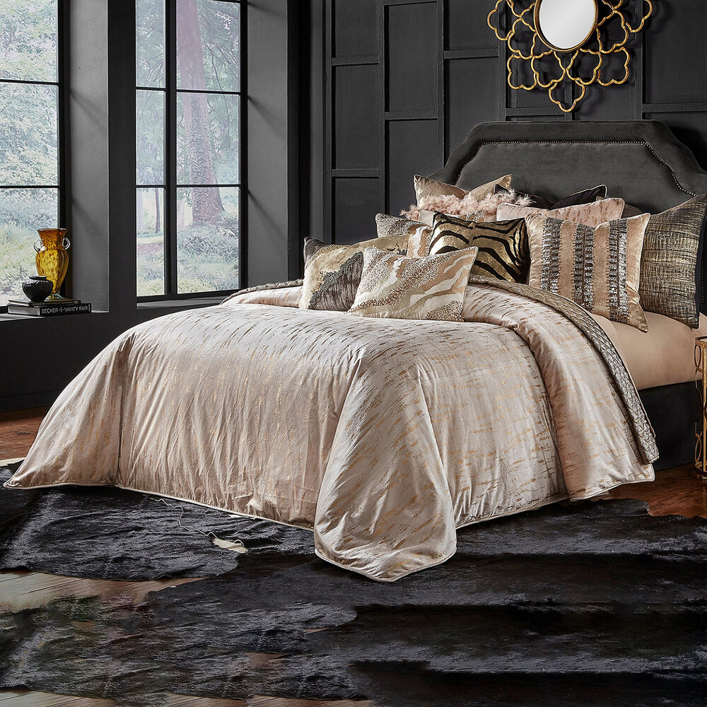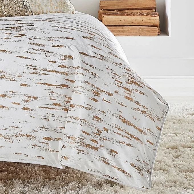 Indulge in the exquisite Arian Duvet, a masterpiece of opulence and elegance. Its plush ivory velvet, adorned with an abstract distressed metallic foil print, adds a touch of contemporary luxury to your decor. The duvet reverses to a solid cotton fabric with button closures, showcasing thoughtful design and practicality. (Insert and Shams not included) Redefine your bedding experience with the Arian Duvet, where comfort meets sophistication, and every detail reflects refined opulence and timeless style. Enhance your decor effortlessly with this symbol of true luxury.