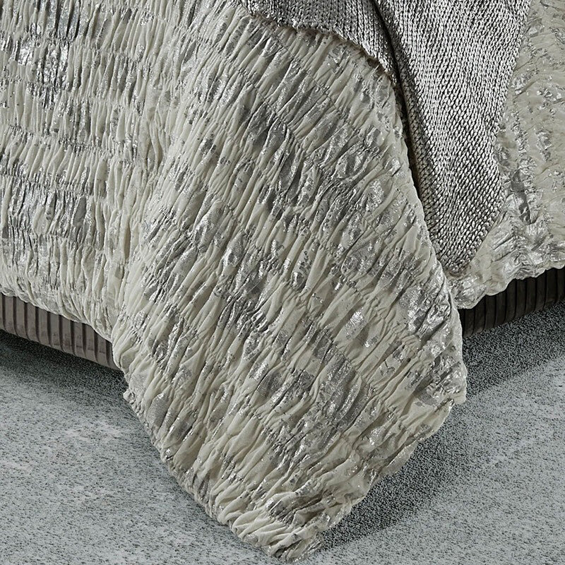 Immerse yourself in unparalleled luxury with our handcrafted Ella duvet, adorned with delicate silver foil accents for a touch of opulence. Each piece is a testament to artisanal skill and attention to detail, ensuring a beautifully unique addition to your bedding ensemble. Pair it with the matching shams to create an ambiance of serene sophistication and indulge in the ultimate statement of comfort and style.