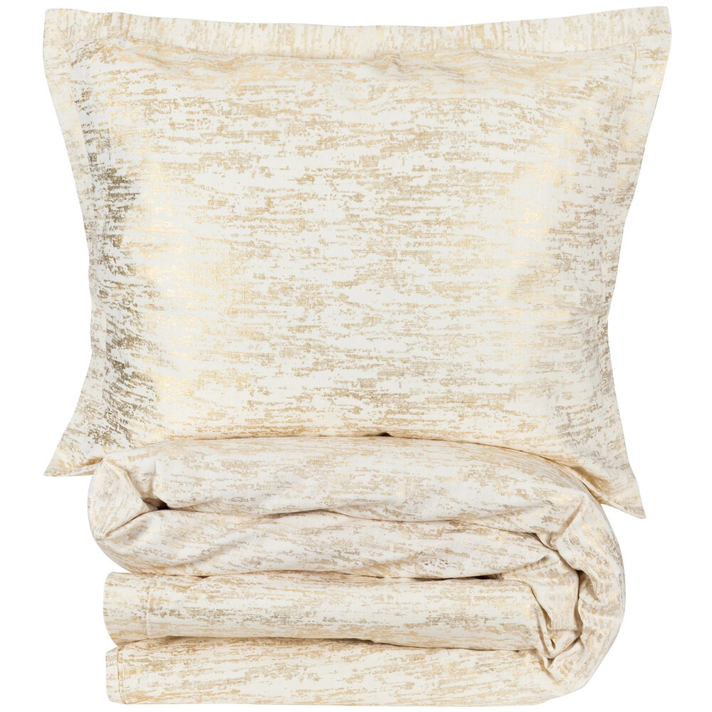 Elevate your bedroom with an infusion of opulence and refinement through our luxurious duvet adorned with metallic gold foil. This exquisite piece effortlessly brings a touch of glamour and sophistication to your sleeping sanctuary, embodying the essence of timeless elegance and tasteful style.