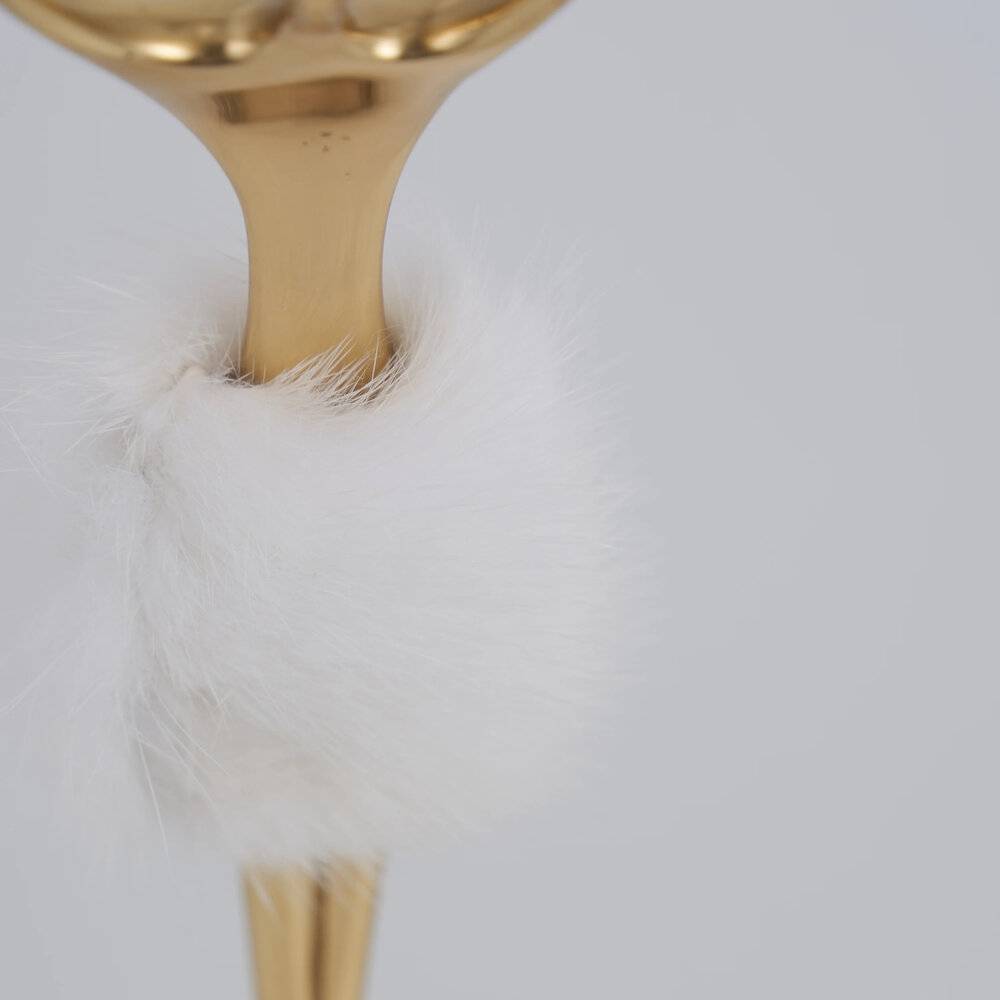 This enchanting ornament showcases a poised ballerina atop a shimmering selenite base, complemented by the soft elegance of marten hair accents. Perfect for adding a touch of grace and beauty to your decor, it captures the essence of sophistication and charm.