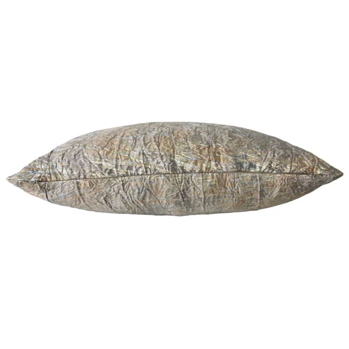 Behold the Allure silver metallic pillow, a jacquard masterpiece adorned with captivating 3D texture. Its shimmering brilliance ignites a symphony of romance, drawing lovers into a world of enchantment and passion, where every touch sparks celestial magic, enveloping them in a realm of eternal love.