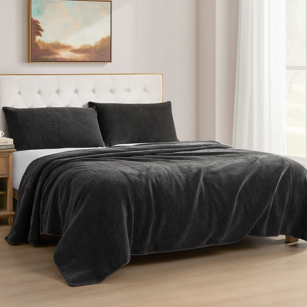 Wrap yourself in the gentle embrace of our Beige Velvet Pebble Quilt Set, where plush velvet meets a soothing, pebble-textured design. Each quilted curve invites a sense of tranquility, while the matching shams, backed in soft cotton, promise restful nights filled with comfort. A touch of quiet elegance, perfect for those who dream of cozy, intimate moments and effortless sophistication.