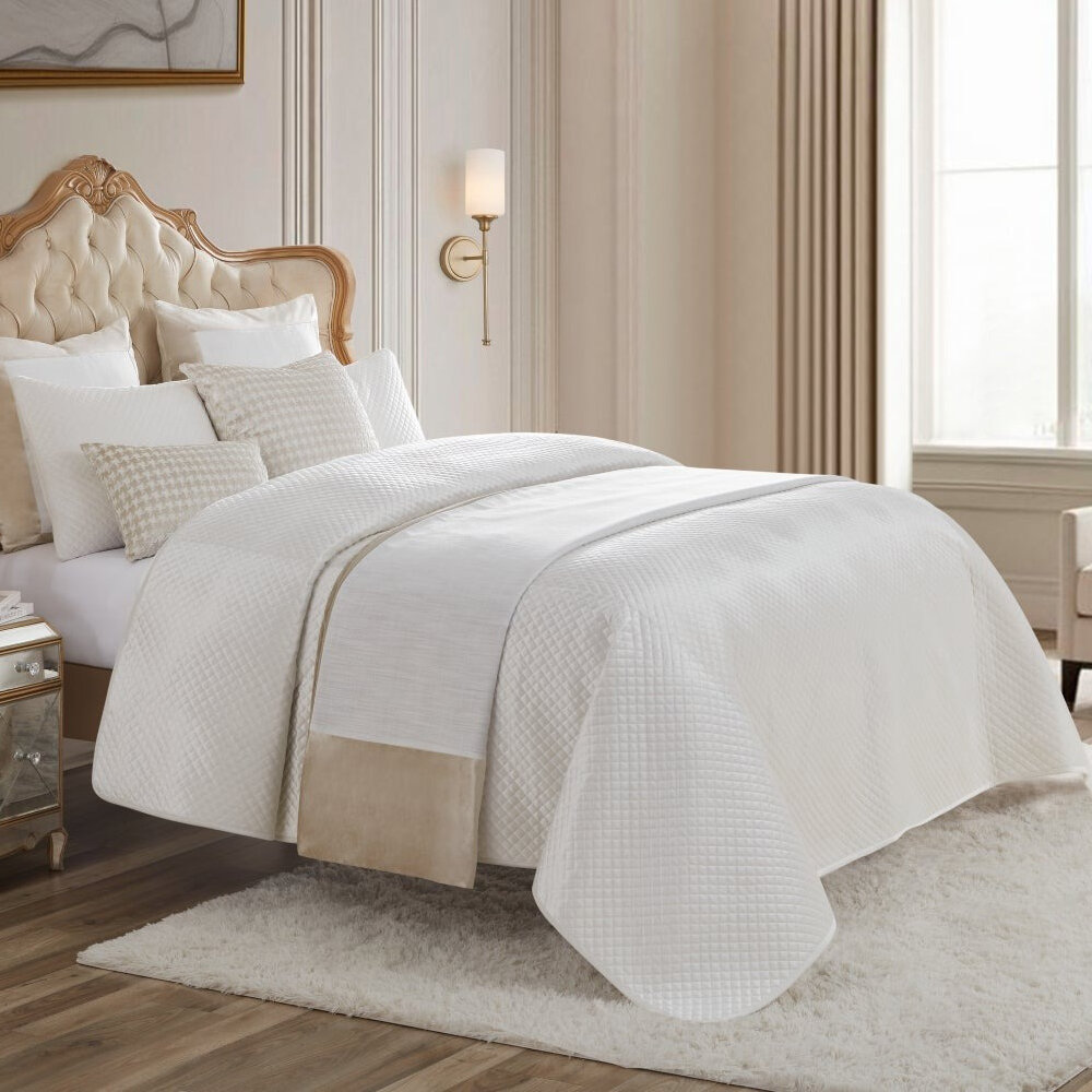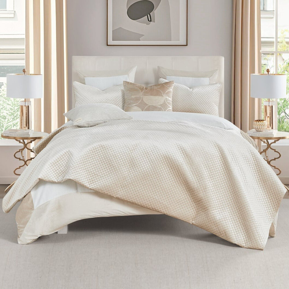 Experience the epitome of luxury and comfort with our Ivory Velvet Diamond Quilted Coverlet Set. Enveloped in a luscious, silky velvet touch, each delicate diamond stitch creates a mesmerizing texture, evoking a sense of elegance and serenity. The matching shams, designed with an overlap closure and backed in smooth sateen, complete the look, turning your bed into a haven of warmth and sophistication. Perfect for those who crave a touch of romance and refined beauty in their sanctuary.