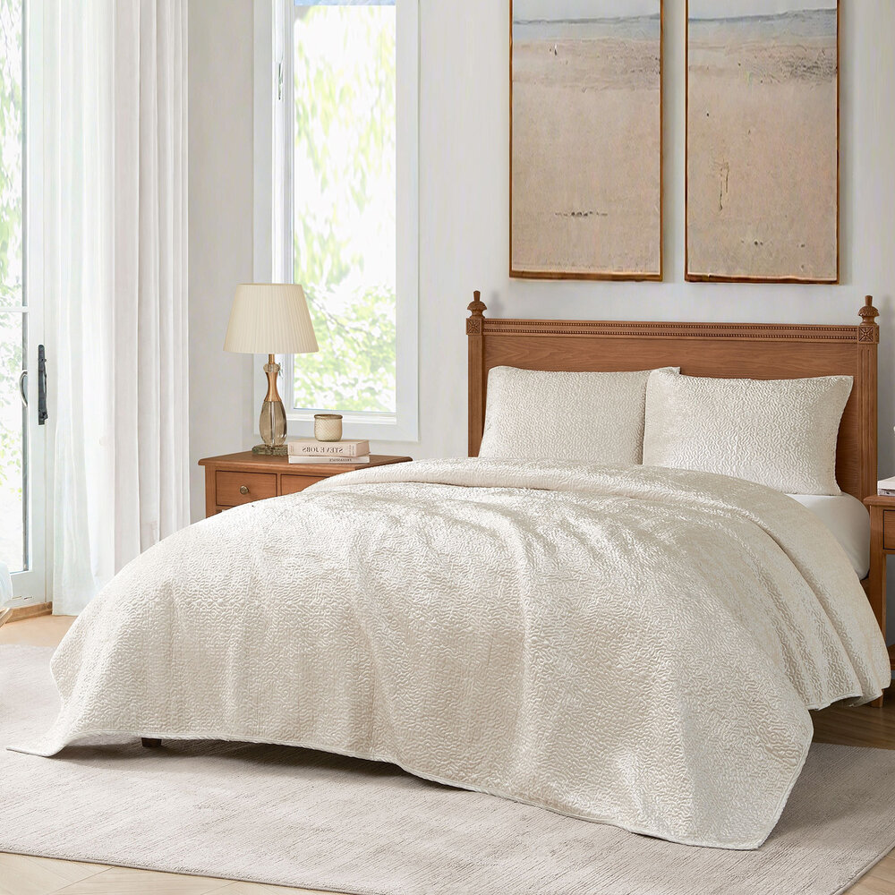Infuse your bedroom with texture and glamour using the luxurious Sayra quilt. Paired with two matching shams, this ensemble is the epitome of sophistication, offering a stylish way to elevate your space. Let the Sayra collection redefine your bedroom aesthetics, adding a touch of opulence and chic comfort to every night's rest.