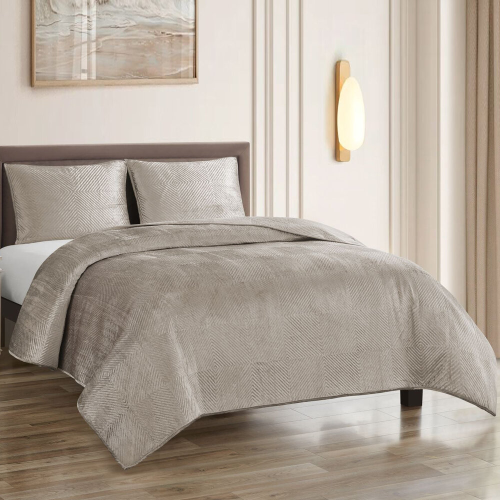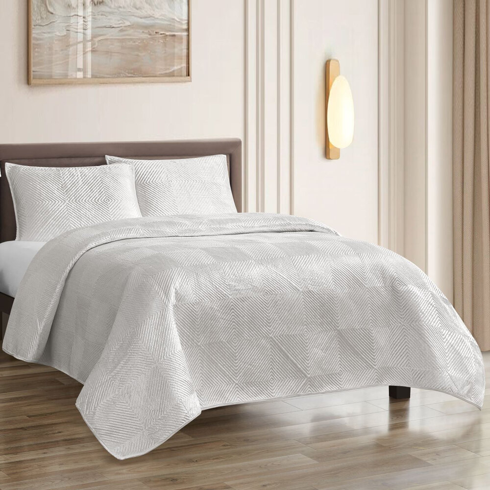Transform your bedroom into a serene retreat with the timeless elegance of the Tivoli Quilt Set. Designed with a modern geometric texture, this quilt effortlessly blends sophistication with comfort. The soft, silky hand-feel invites you to unwind, while the subtle sheen adds a touch of luxe to your everyday sanctuary.