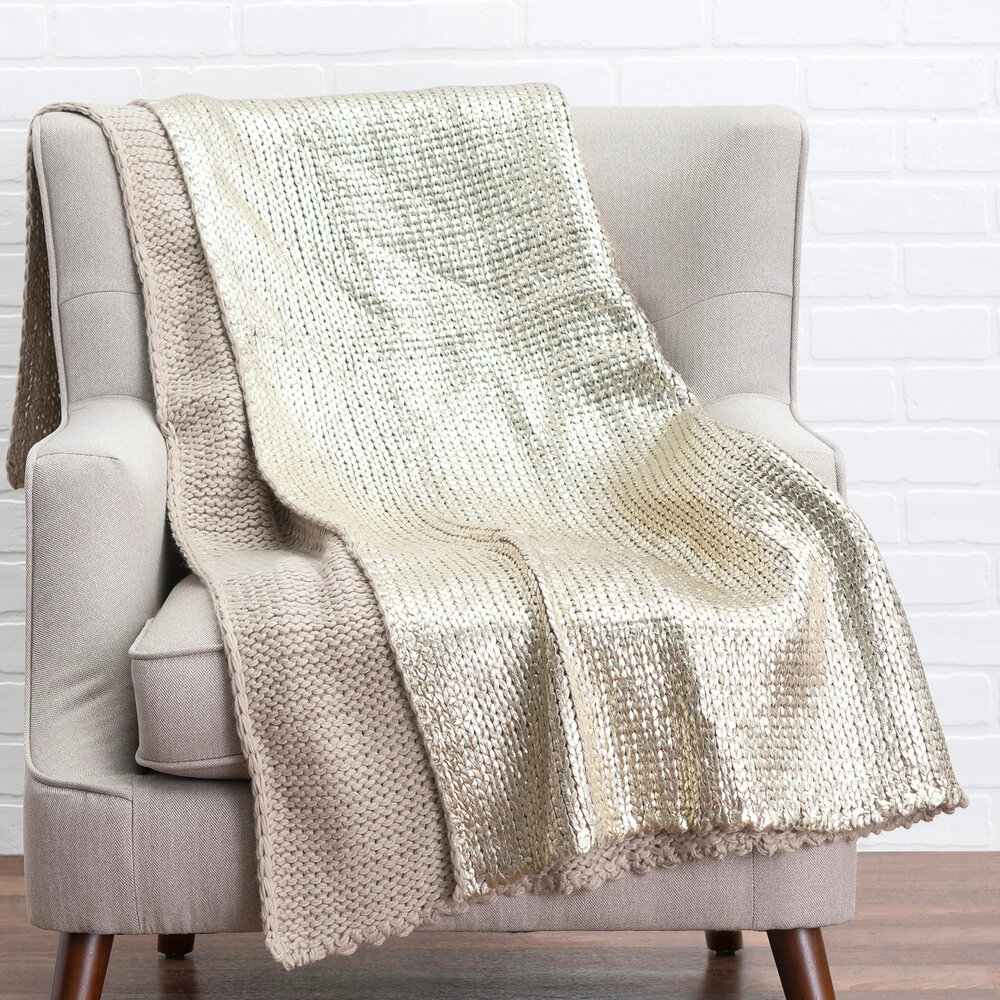 Acrylic Knitted Throw with Gold metallic foil. 100% Polyester- Dreams Collection.