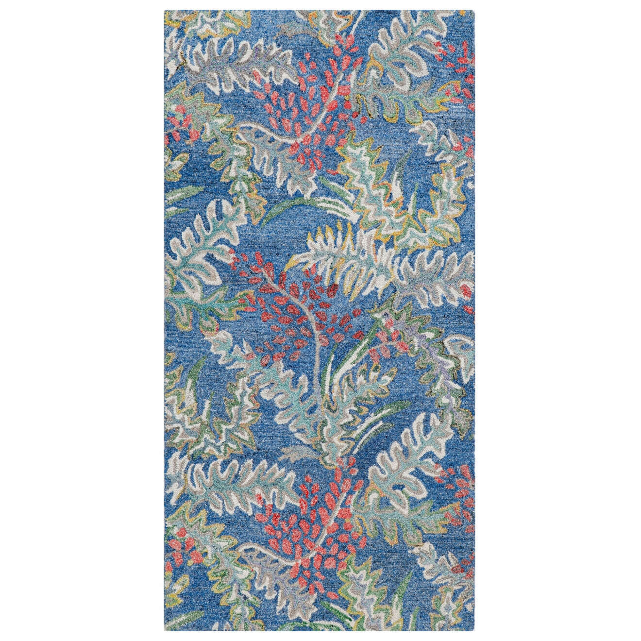 Dreamy honeysuckle flowers cascade across a deep blue ground. Hand-tufted with intricate, space-dyed polyester yarns in a dense loop pile, this rug is not only a beauty, but oh-so-easy to care for; simply clean with water and mild soap.