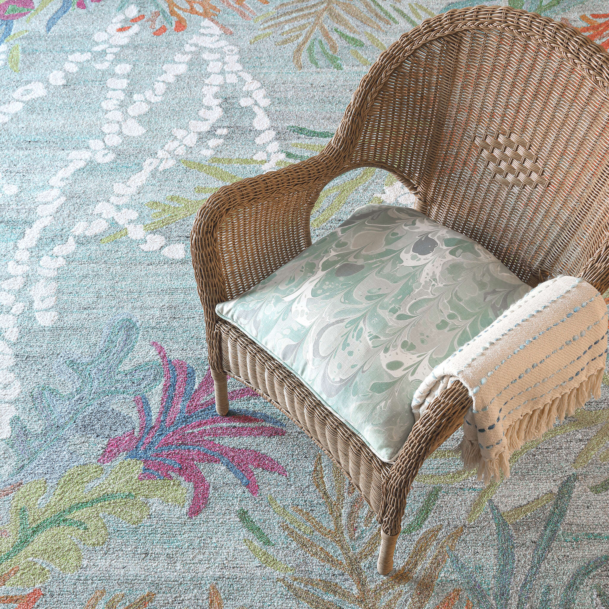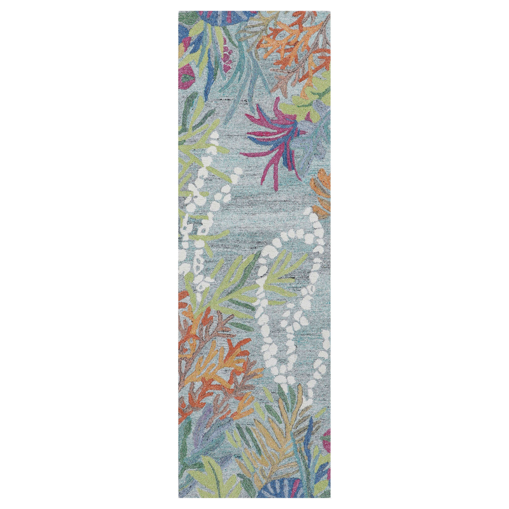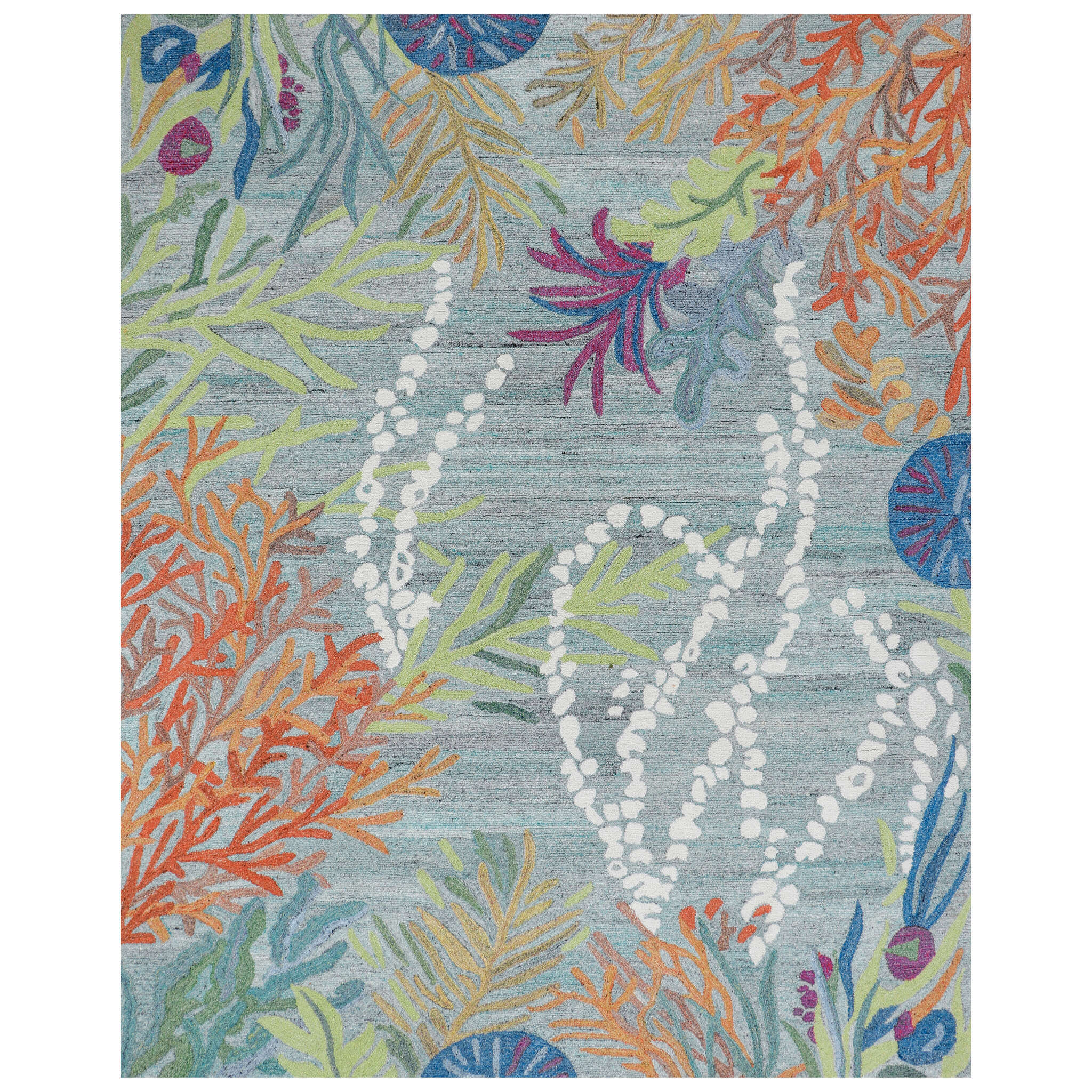 We updated our bestselling Under-the-Sea rug using our new eco-friendly recycled polyester yarns, and added GoodWeave certification. Each yarn is hand-spun with many colors to add more dimension and texture to this wonderful underwater garden. The thick loop pile is perfect for high-traffic areas, and cleanup is a breeze!