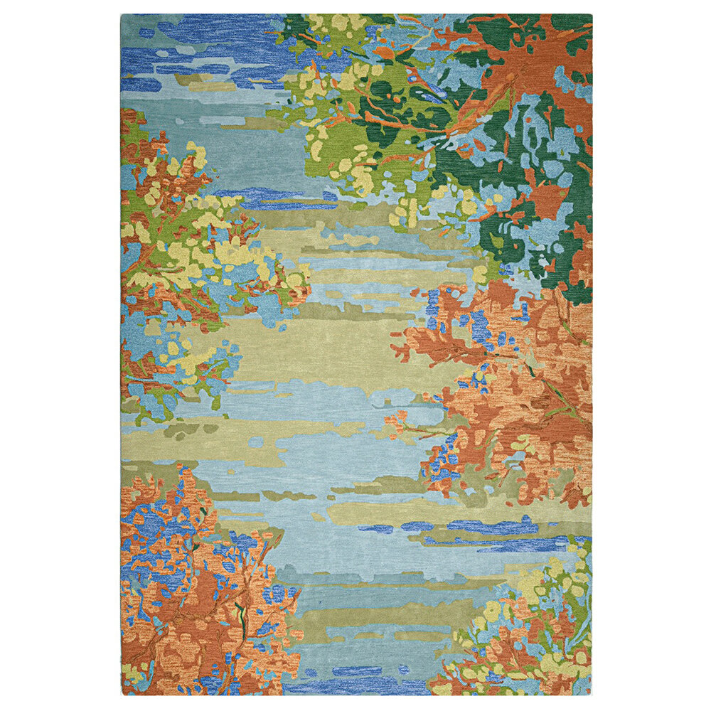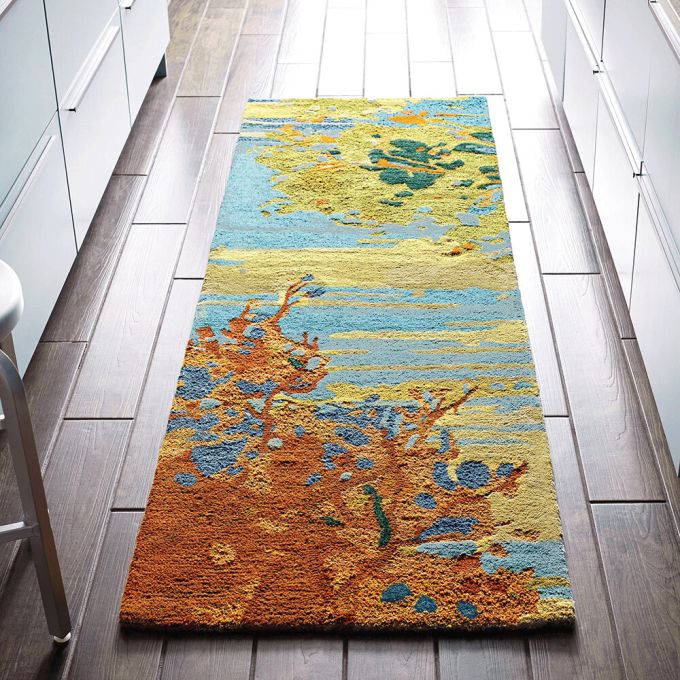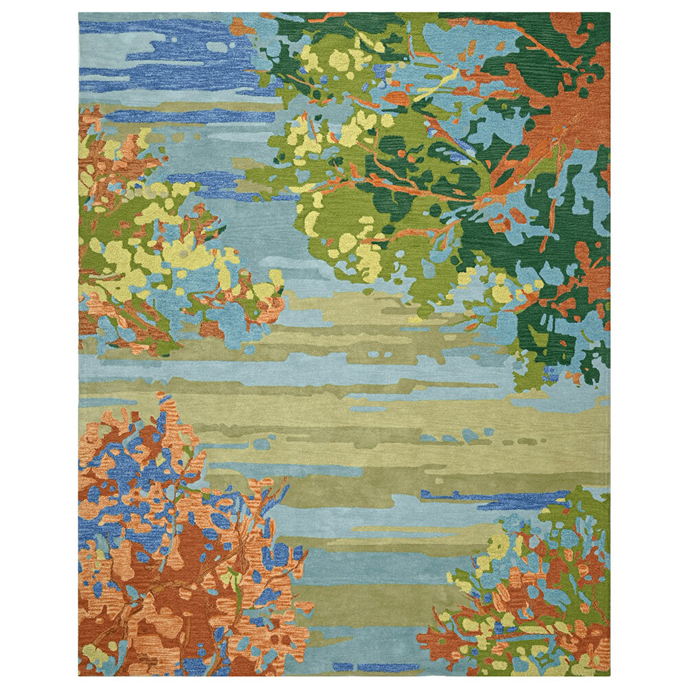 Art for the floor, our hand-made Landscape rug was inspired by an oil painting by artist Jennifer Hansen. Hand-tufted, our pure wool Landscape rug features gradations of color in the sky and trees to form a beautiful backdrop of soothing color for any room.