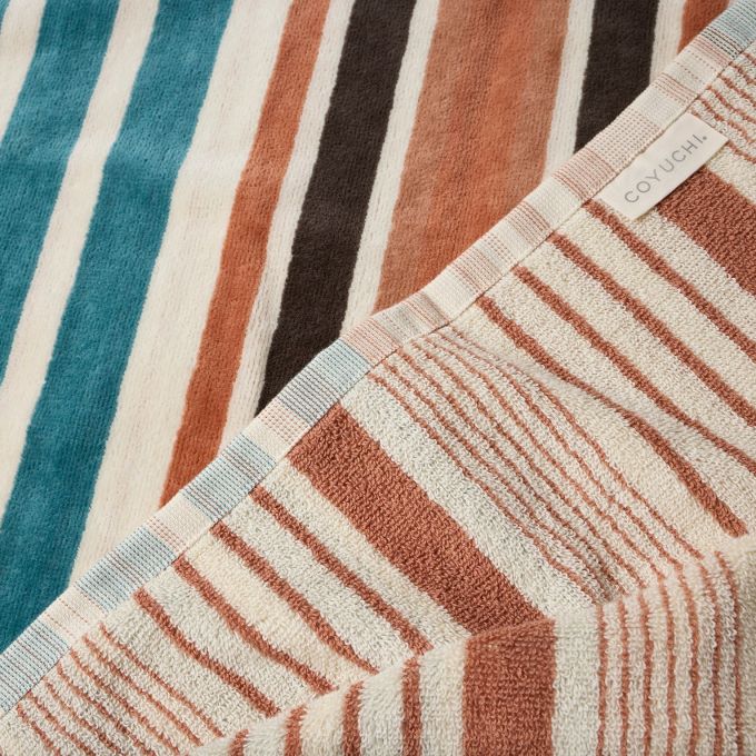 Crafted from all natural, 100% organic cotton, the Dawn Stripe Organic Beach Towel features a vibrant, nature-inspired striped pattern. One side features soft, premium velour—turn it over and you’ll find an absorbent looped terry design. Blending European yarn-dyed stripes with ocean and earth tones, this towel’s unique design invites you to relax and unwind.