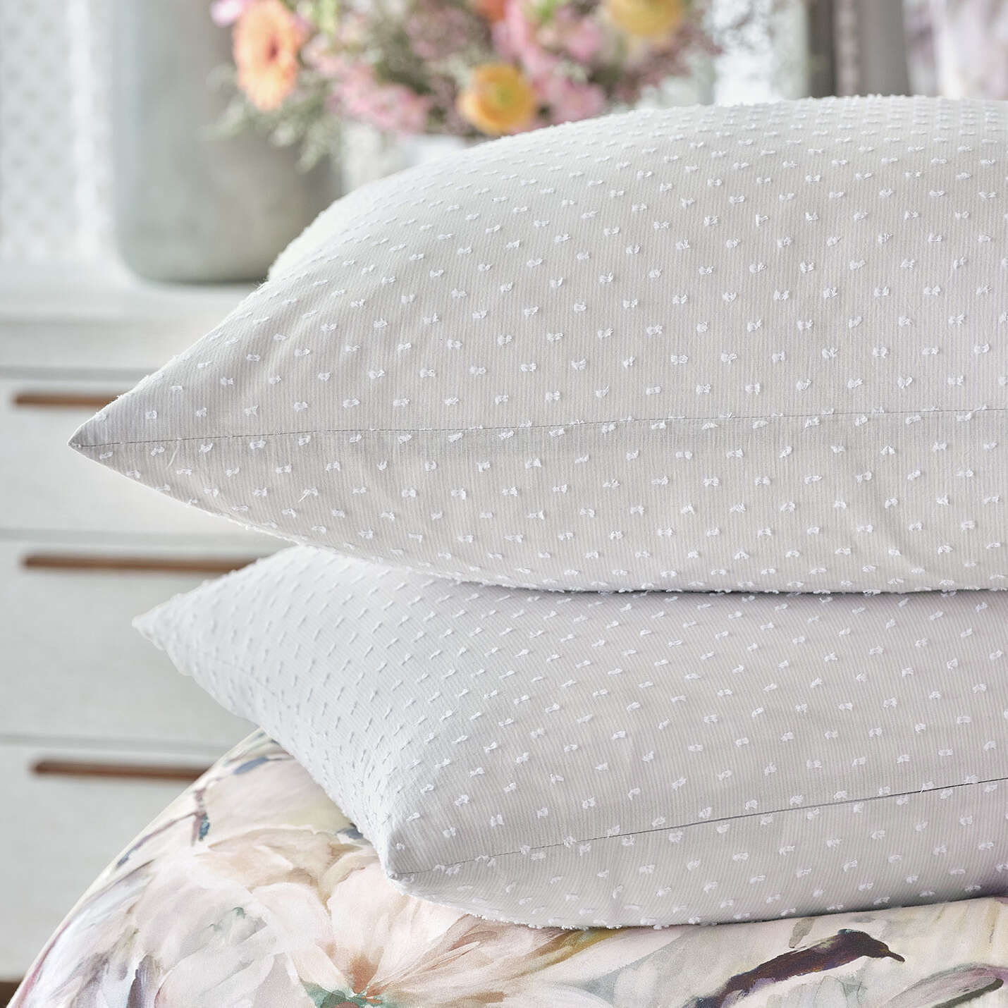 Sham: in Farfalla Dove, reverses to self. Knife edge finish. Invisible zipper closure.