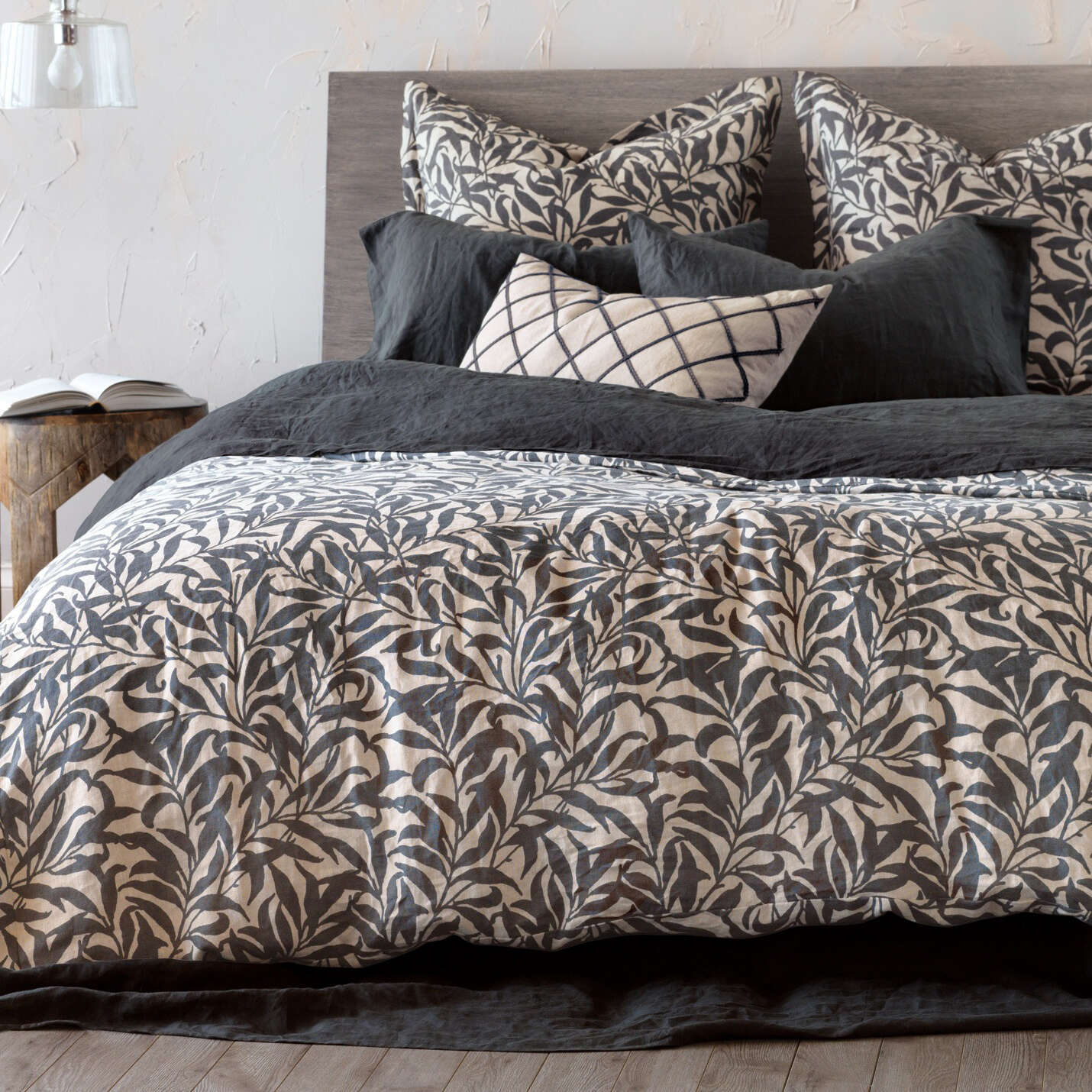 Let the everyday luxury of 100% linen sweep you off your feet. Crafted from the finest Italian flax, Camilla is easy as a soft summer breeze. Its cozy, weathered texture comes from a traditional stone-washing method that keeps the fabric soft, durable, and fade-resistant. A warm gray vine pattern adds to Camilla’ s natural appeal - and all fabrics are 100% machine washable for extra ease of care. 100% Pure Printed Linen.