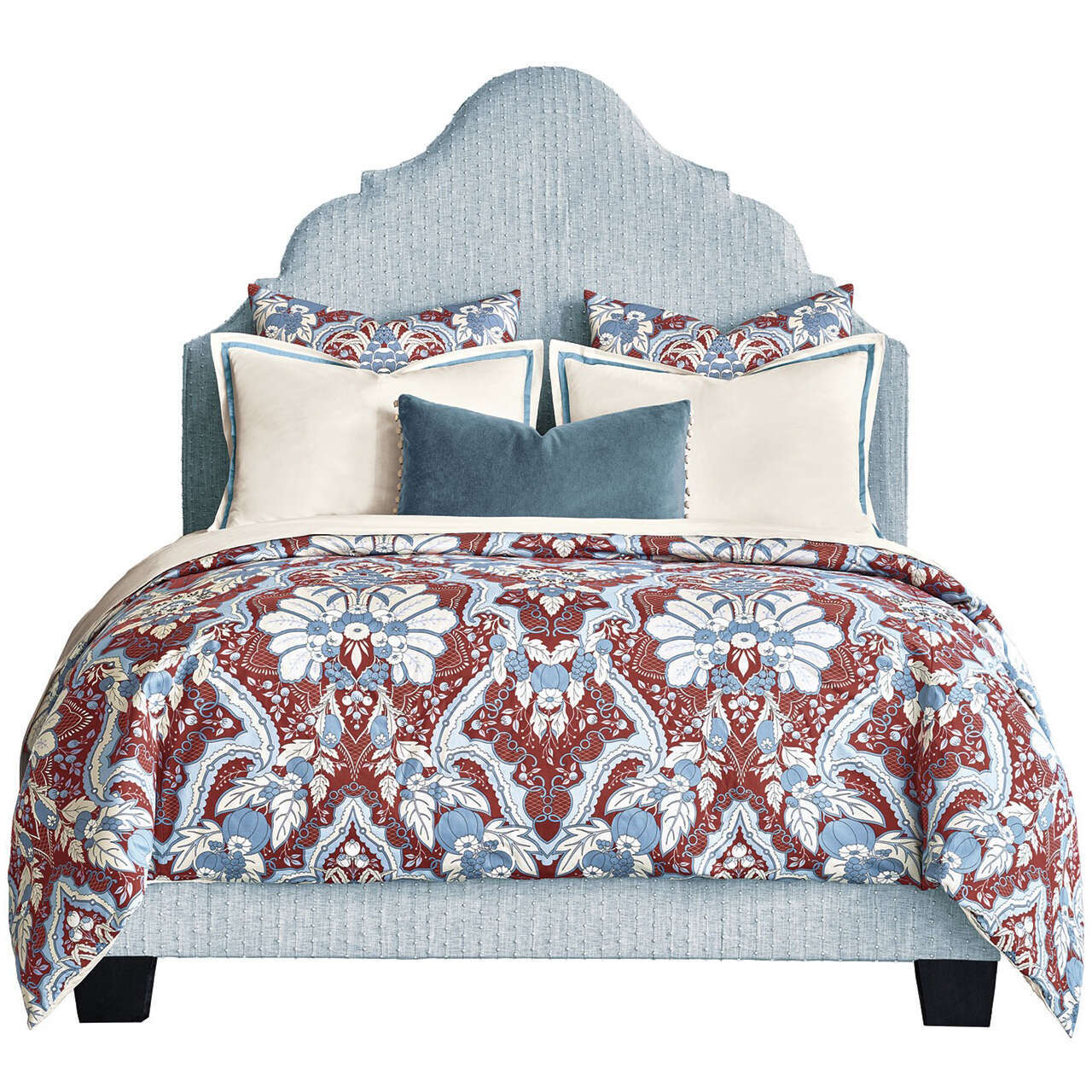Summers in New England inspired Giorgina's charming fine linens. Sourced from a premier Italian fashion mill, this damask pattern is printed on 100% organic sateen in breezy blues and rich reds. Pair with an airy cotton duvet cover, trimmed in blue sateen ribbon, for a clean and classic aesthetic. Giorgina is timeless Americana to a tee.