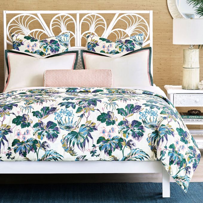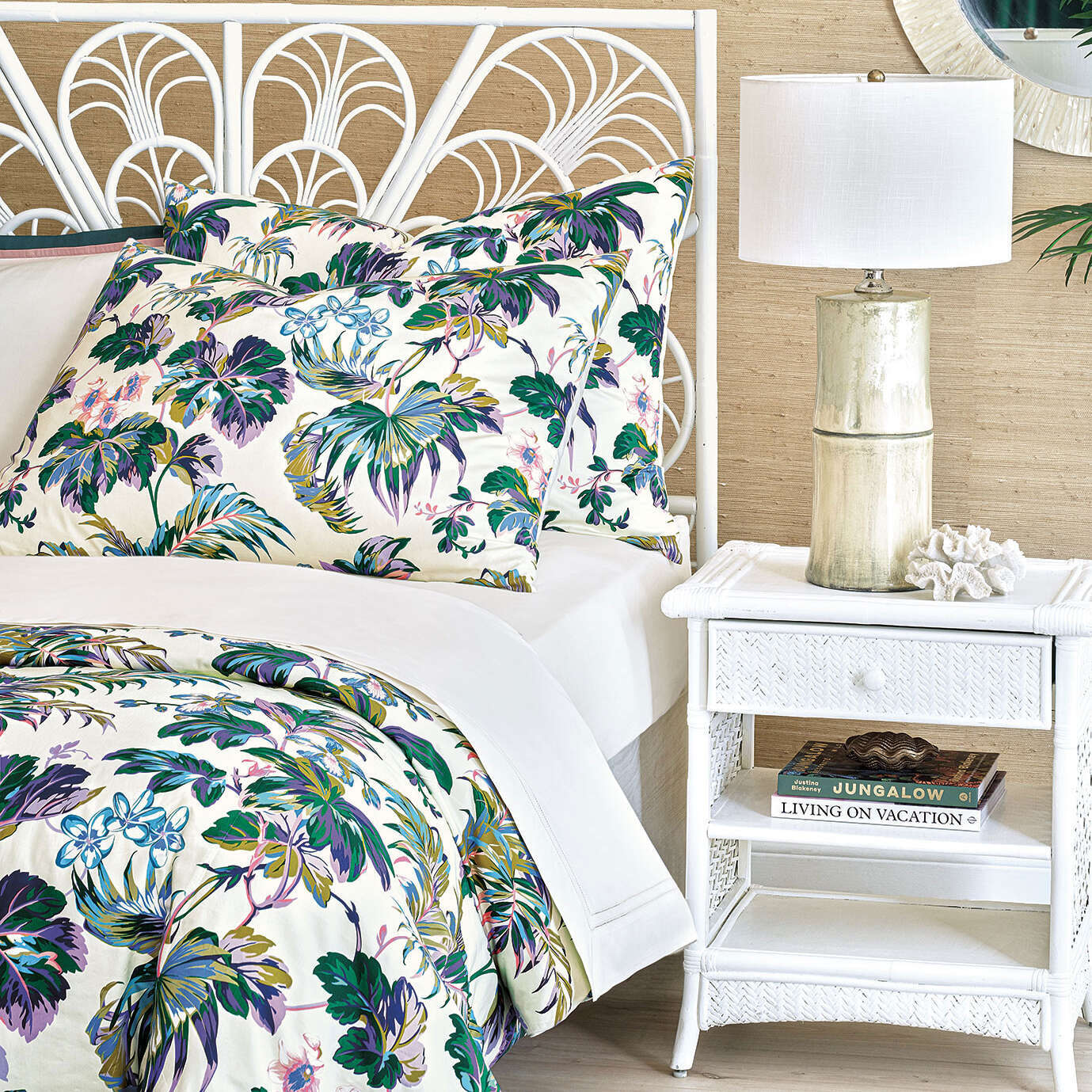 Botanical Duvet Cover: 100% cotton duvet cover with a botanical print on face. Reverses to Nuvola Classic Ivory. Knife edge finish. Invisible zipper closure for easy use. Ties inside all four corners for easy comforter attachment. Inserts sold separately.