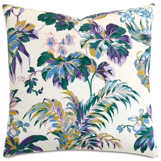 Botanical Sham: 100% cotton Dutch Euro sham with a botanical print on face. Reverses to Nuvola Classic Ivory. Knife edge finish. Pillow insert of your choice included. Invisible zipper for easy care.