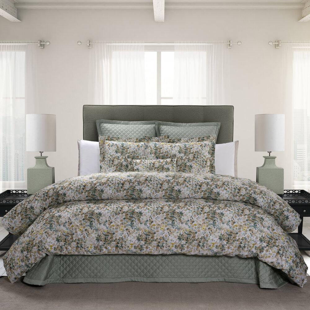 A Floral Enchantment inspired by the Renaissance. The Annabella design has been created by looking at the flower garlands that frame La Primavera by Sandro Bollicelli with grace and armony. Each Flower has been carefully chosen to tell the story of beauty, rebirth and delicacy of the naturalistic design. Dea wanted to translate that timeless imagery into a textile design, where nature becomes poetry and the bed turns into a secret garden. The result is a precious and enveloping printed pattern that pays homage to art with its purest expression.