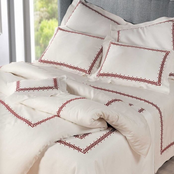 Etruria ia a classic Greek key embroidery design framed by small squares.