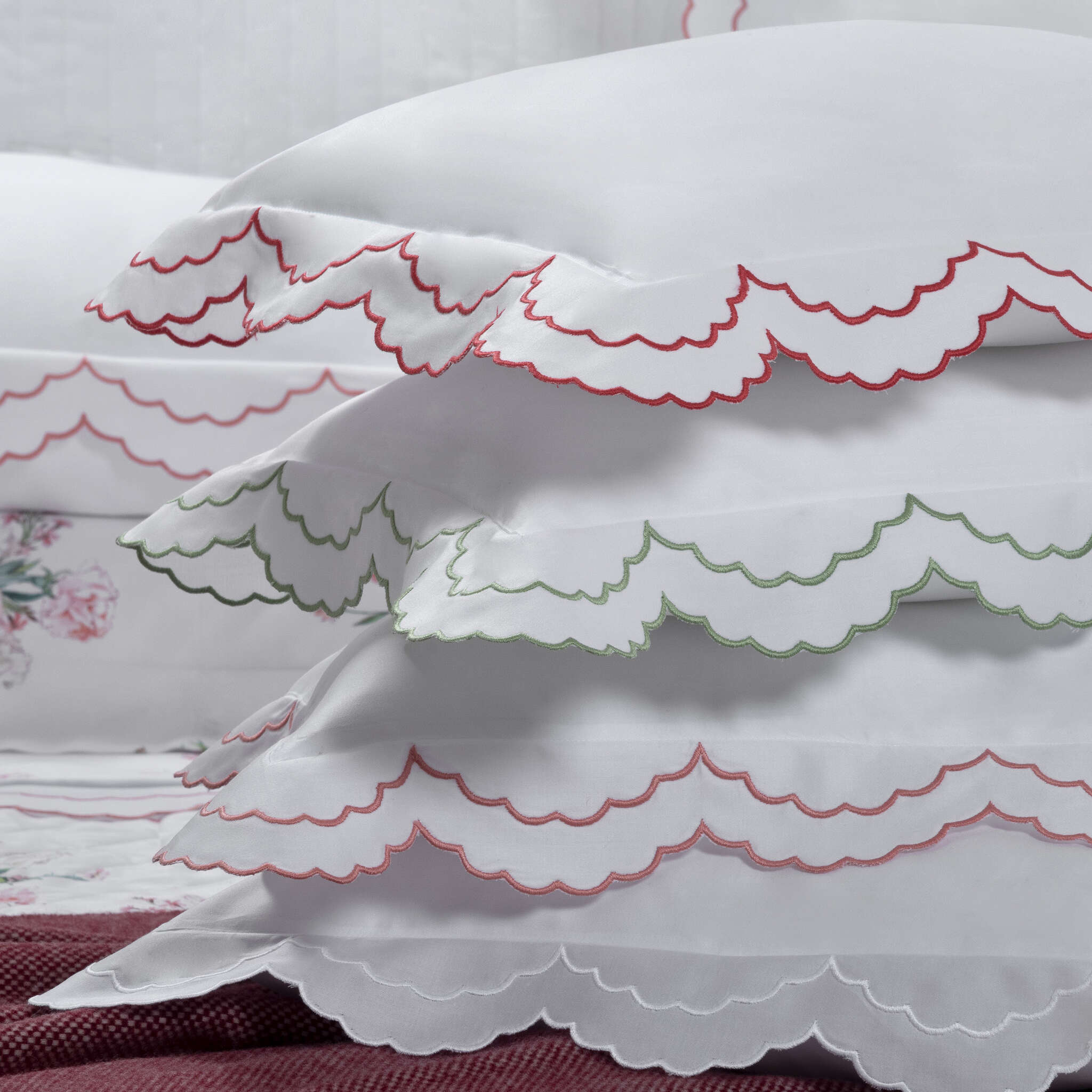Sham: Approximately 3-inches mitered flange on shams; 2-inches mitered flange on boudoir; 4-Side Embroidery on Flange.