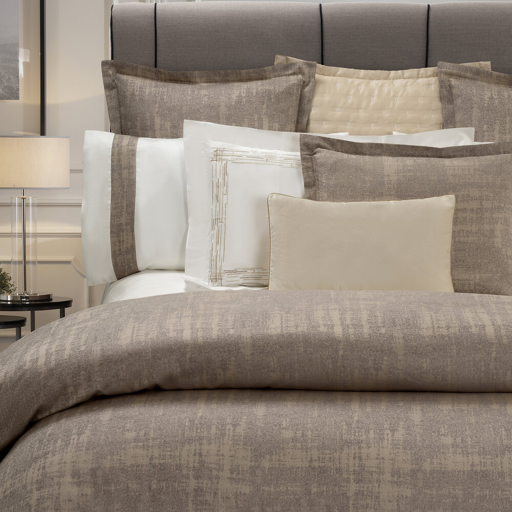 Pillowcase: Solid raso cotton sateen with jacquard inset.