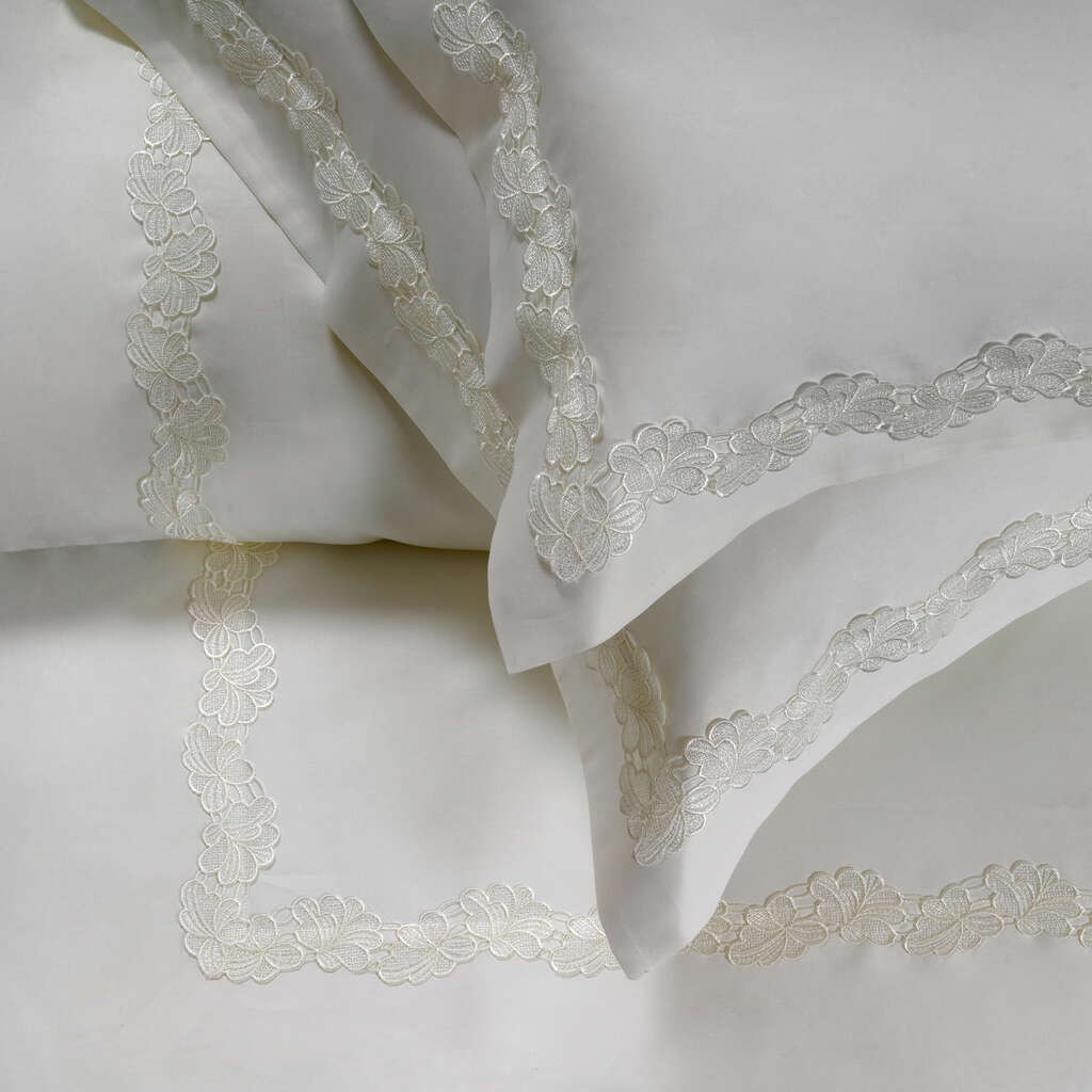 Fabrication: Macrame’ Embroidered Lace, Applied on 100% Cotton sateen, made by Italian expert artisans in our LAB in the Chianti Region.