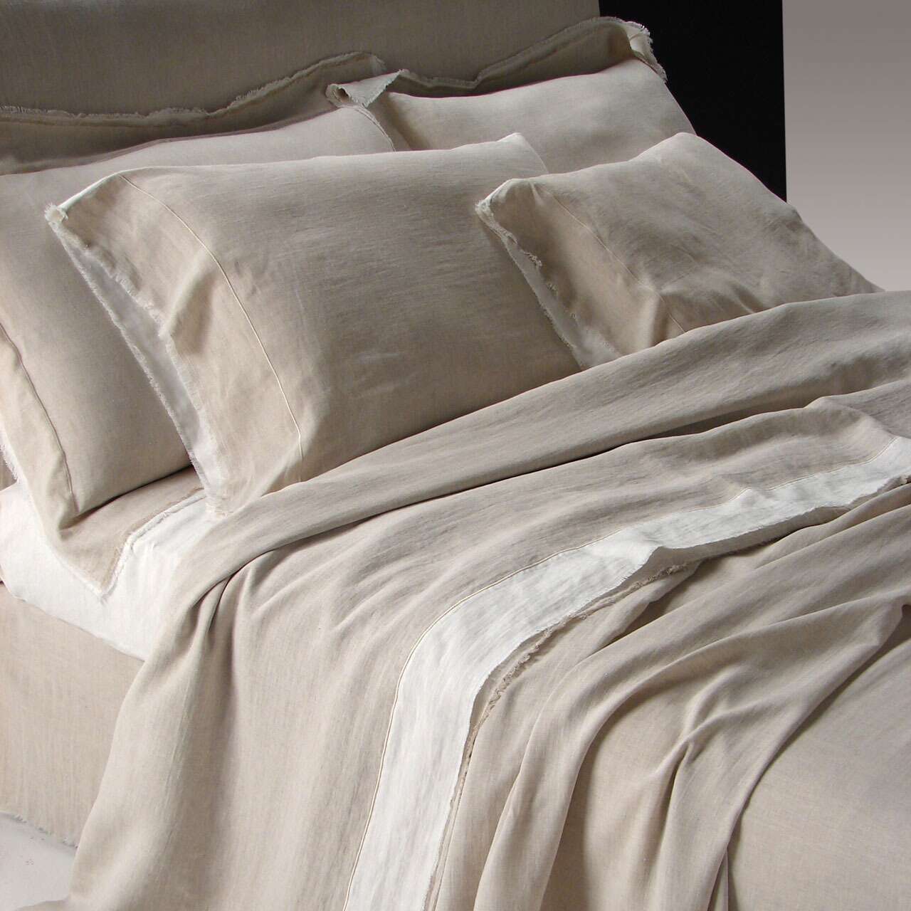 Sham: Framed on the sham with hand-made Fringed double flanges apply with a tailored single row of satin stitch.