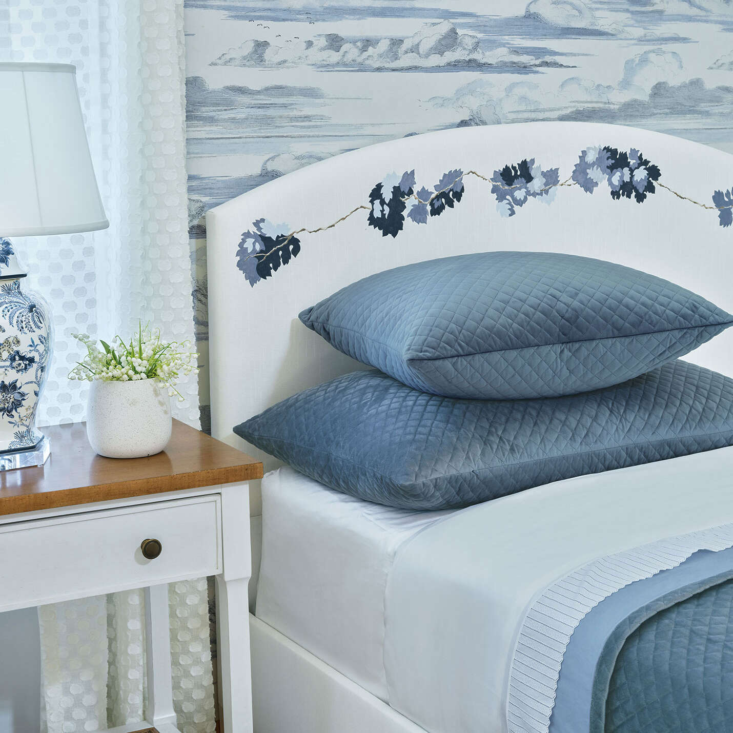 Drape your bed in snug style with our Beatrice Coverlet. Silky smooth velvet, quilted in a 1" diamond pattern, makes for an irresistibly cozy bedspread. Backed in matching blue percale for added comfort, this coverlet is 100% machine washable for everyday ease of care.