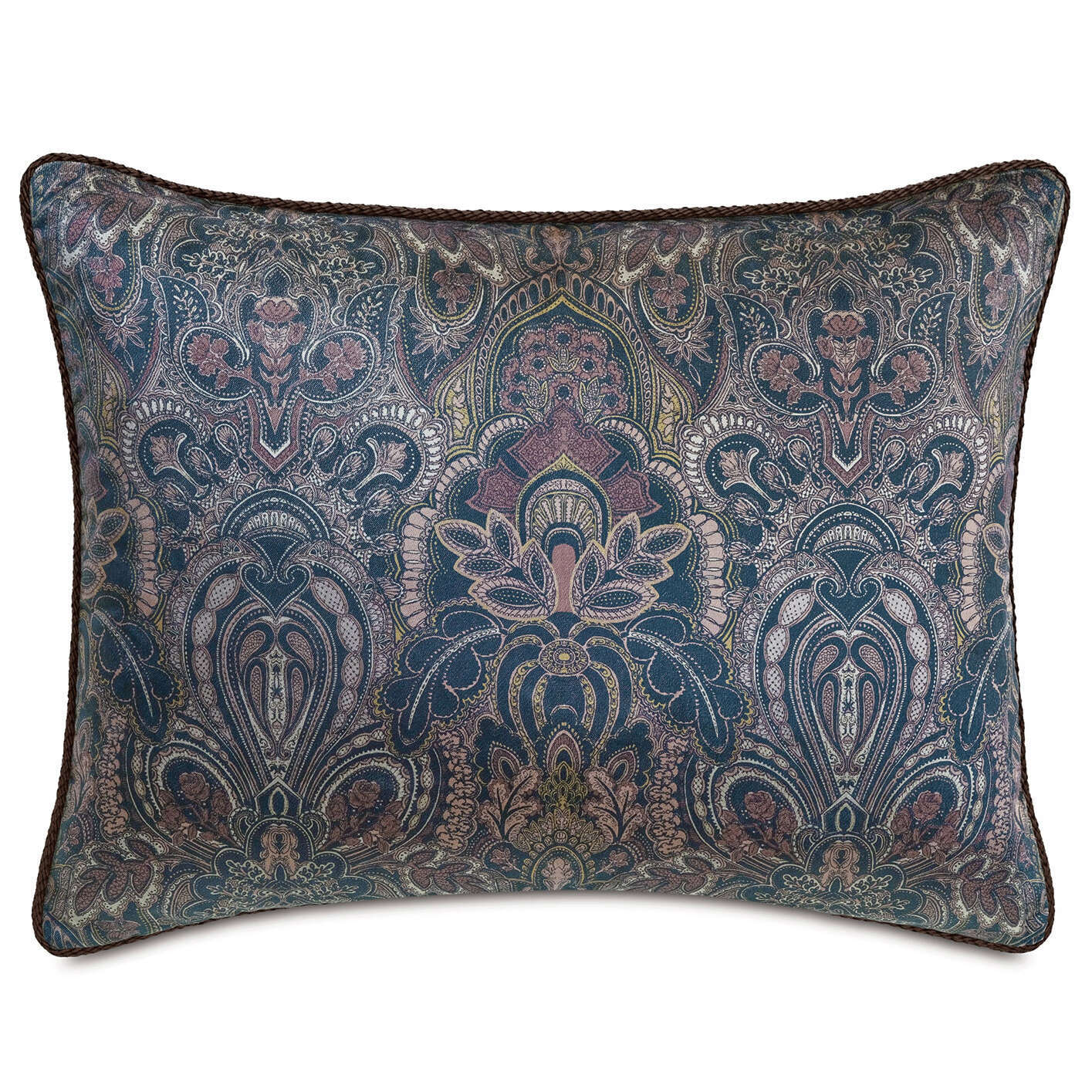Standard, King Sham: Lustrous velvet featuring a printed damask pattern centered on face. Reverses to Hamish Toast. Cord edge finish.