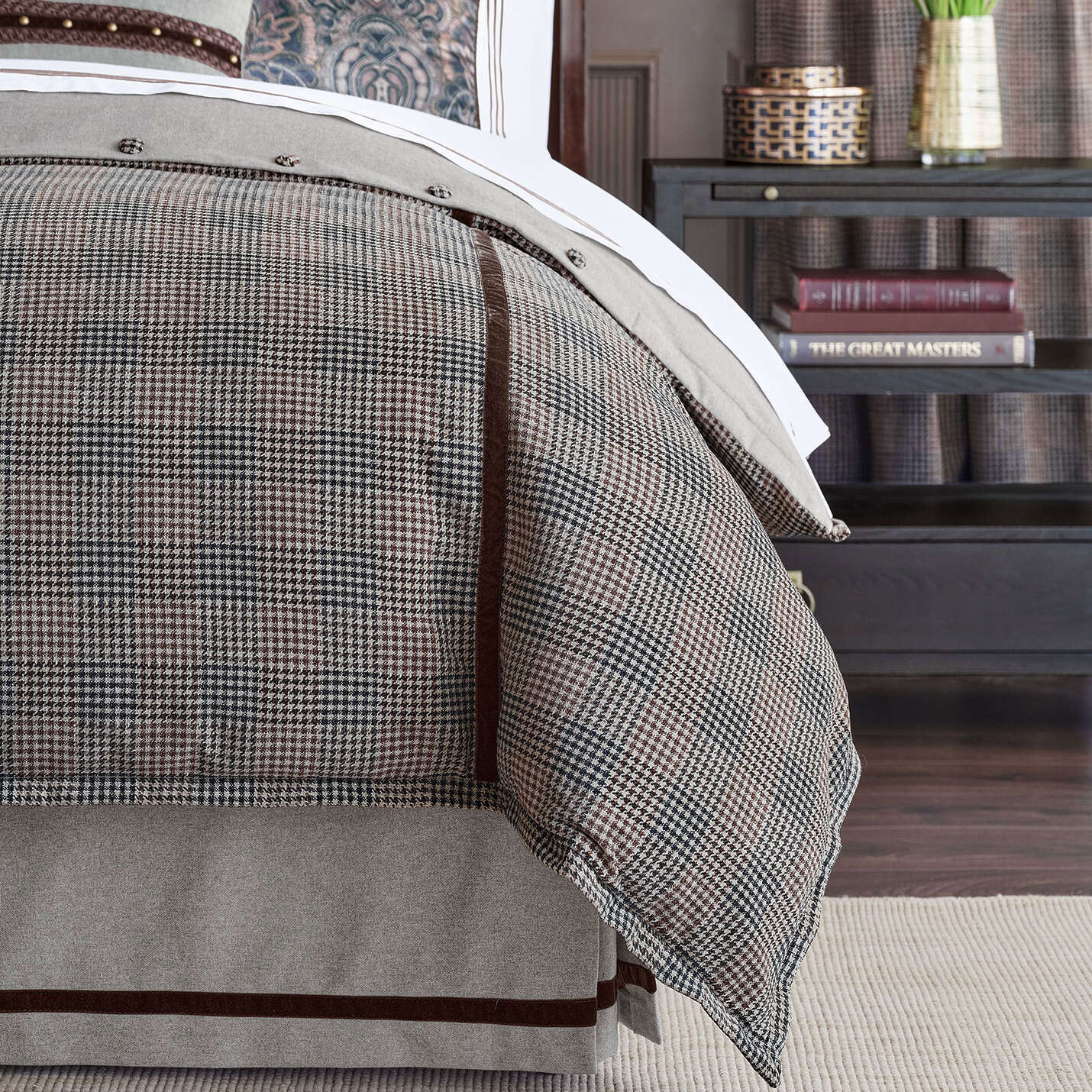 Lay a tailored foundation for your bedding with our Cristobal Woven Plaid Comforter. Handcrafted from an earth-toned houndstooth pattern and trimmed with rich brown velvet ribbon, this distinguished design blends classic detail with welcoming warmth.